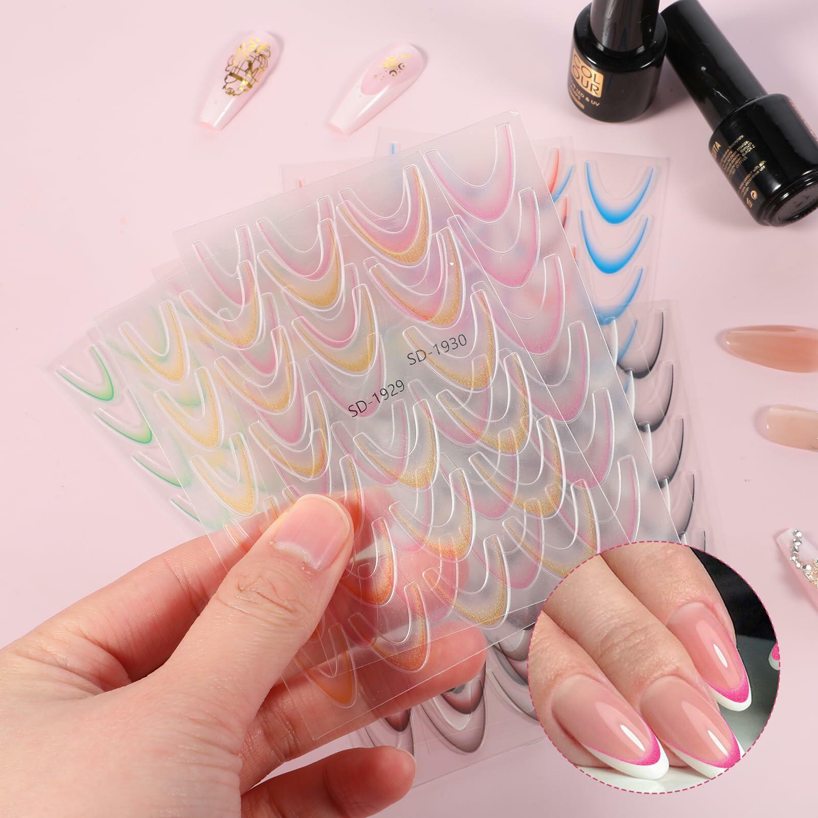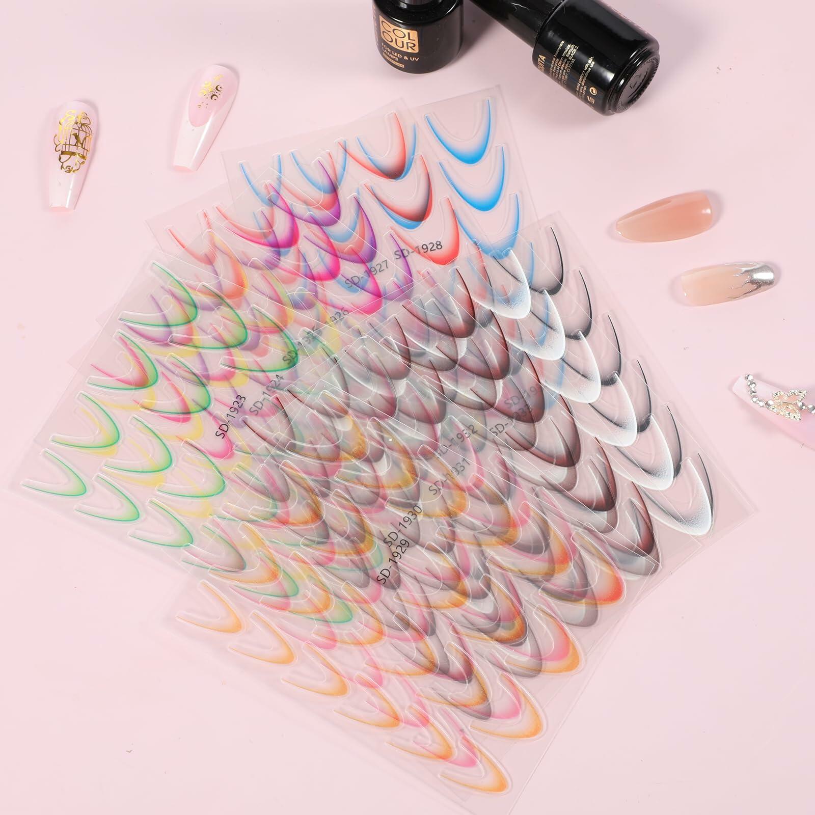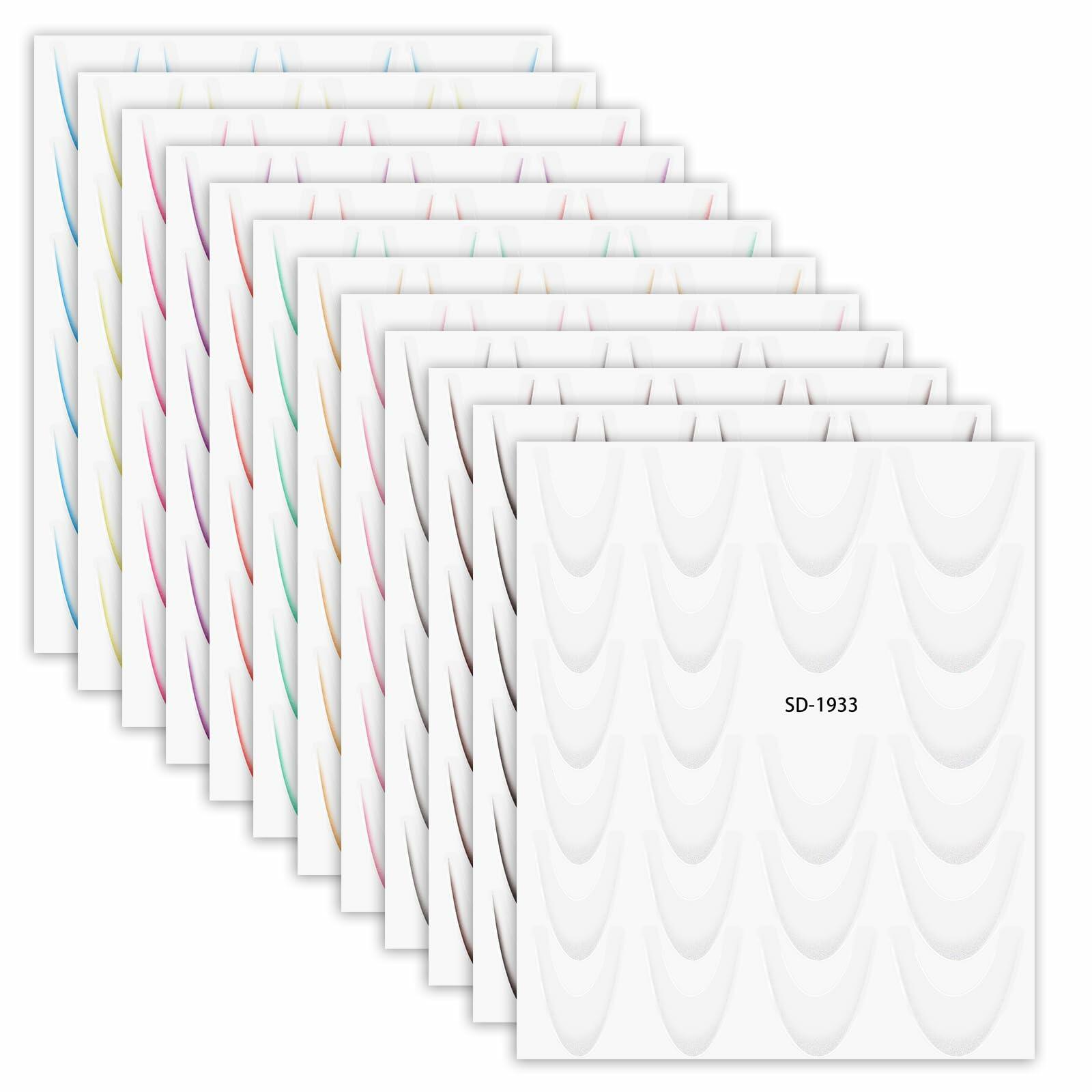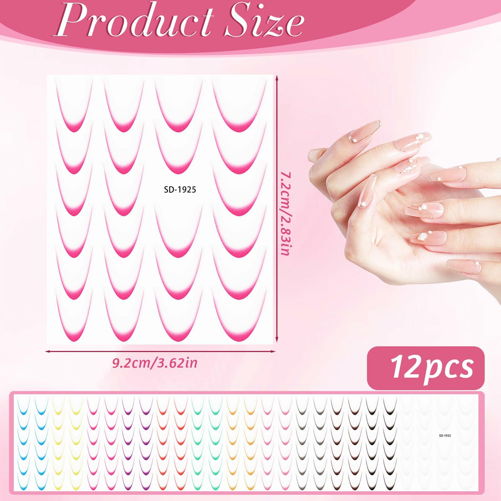 Lnngub Nail Art Stickers French Gradient Stripes White 12 Sheets
