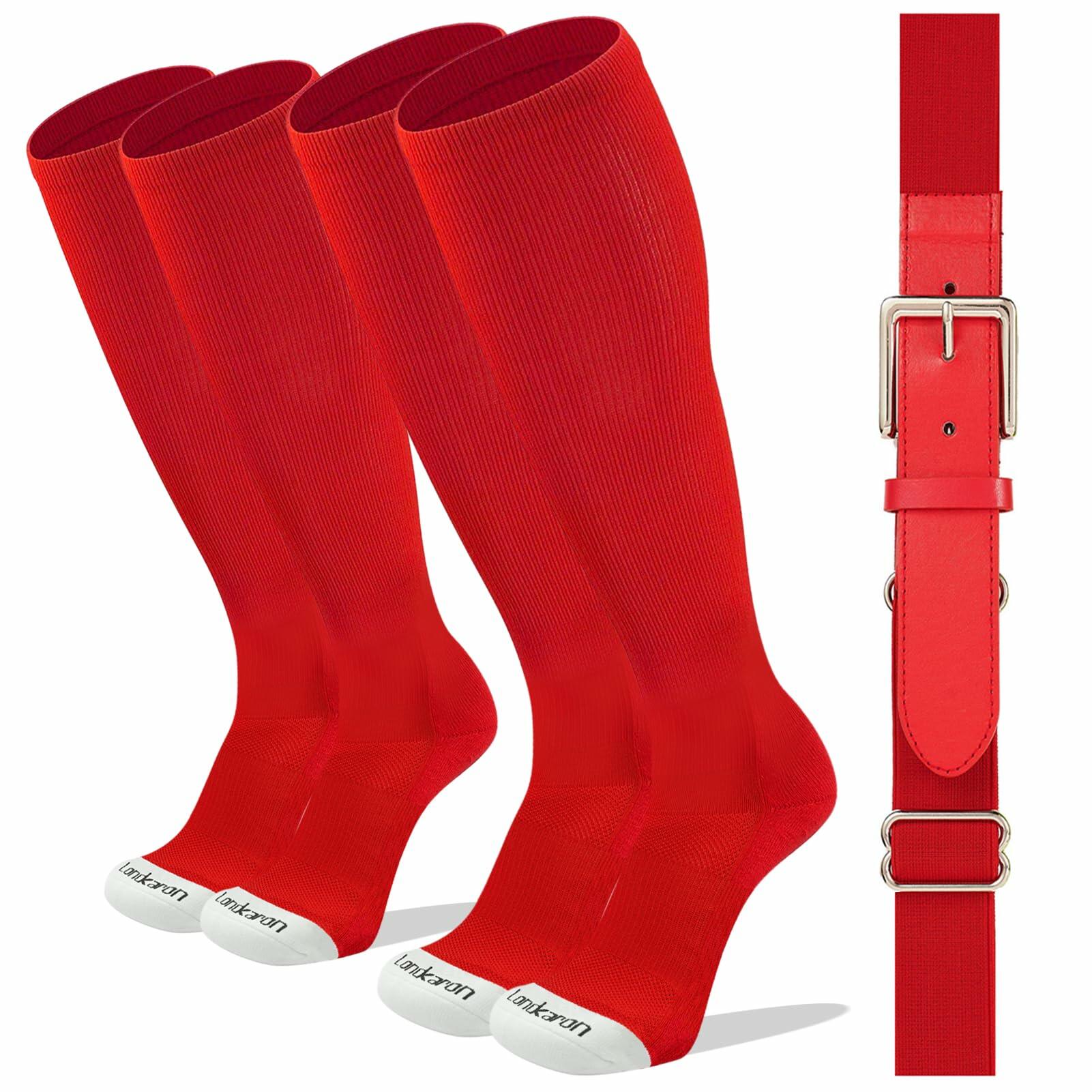 These solid socks are an ideal weight and length for baseball, softball, T-Ball, lacrosse, football, wrestling and more! This sock is a crew length (over the calf) and designed for youth and adult. Our socks provide a perfect composition between comfort and grip. With high nylon percentage, these socks are designed to be the best amongst the market while providing a greater comfort with breathable and moisture absorbent fabric. The small size of our baseball belt is in 41" length and 1.5"/3.8 cm width, the medium and large size of belts are in 46" length and 1.5"/3.8 cm width. These baseball socks are constructed with lightweight, hard wearing fabrics that allow your feet to stay cool and stand up to many seasons of use. They are constructed with extra breathable and antiskid particles as better cushion at the bottom of the feet for enhanced air permeability & slip resistance, so you can stay comfortable out in the field.