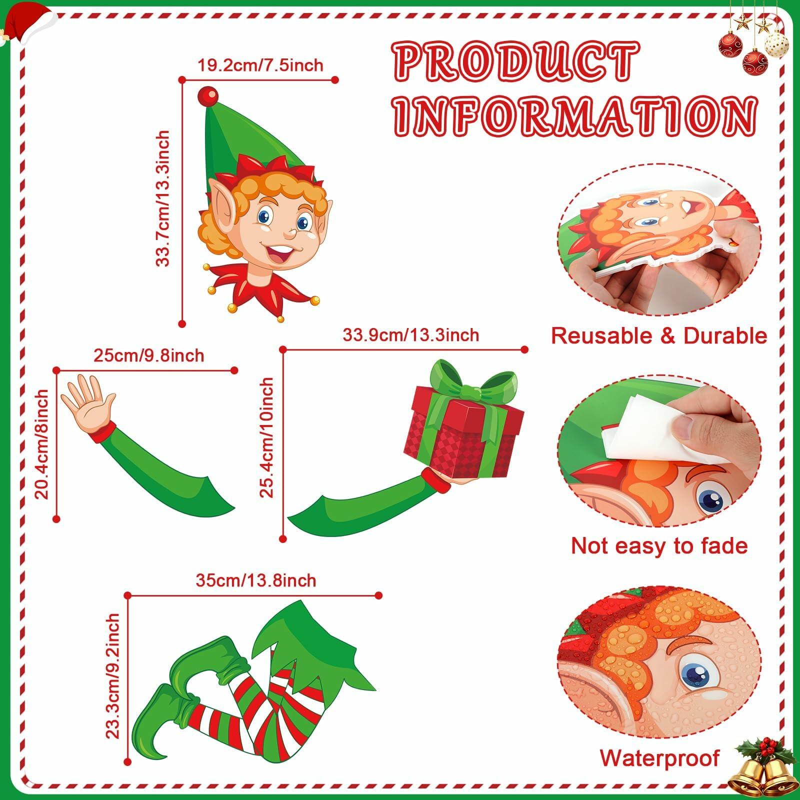 - Package includes: You will get 4pcs of funny Christmas tree ornaments in total, including 1pc of elf’s head decor(13.3 x 7.6inches), 1pc of elf’s arm sign(9.8 x 8inches), 1pc of gift boxes ornament(13 x 10inches), 1pc of elf’s feet decor(13.8 x 9inches), and 8pcs of sticks, 2 sheets of adhesive dots. Ideal for adding a touch of humor and charm, these decorations are ideal for those who want to create a memorable elf-themed Christmas tree that stands out.
