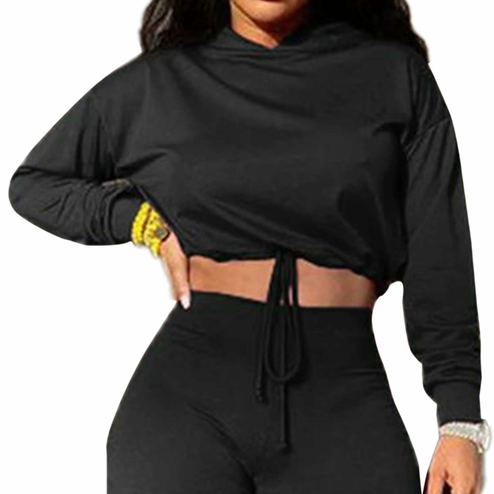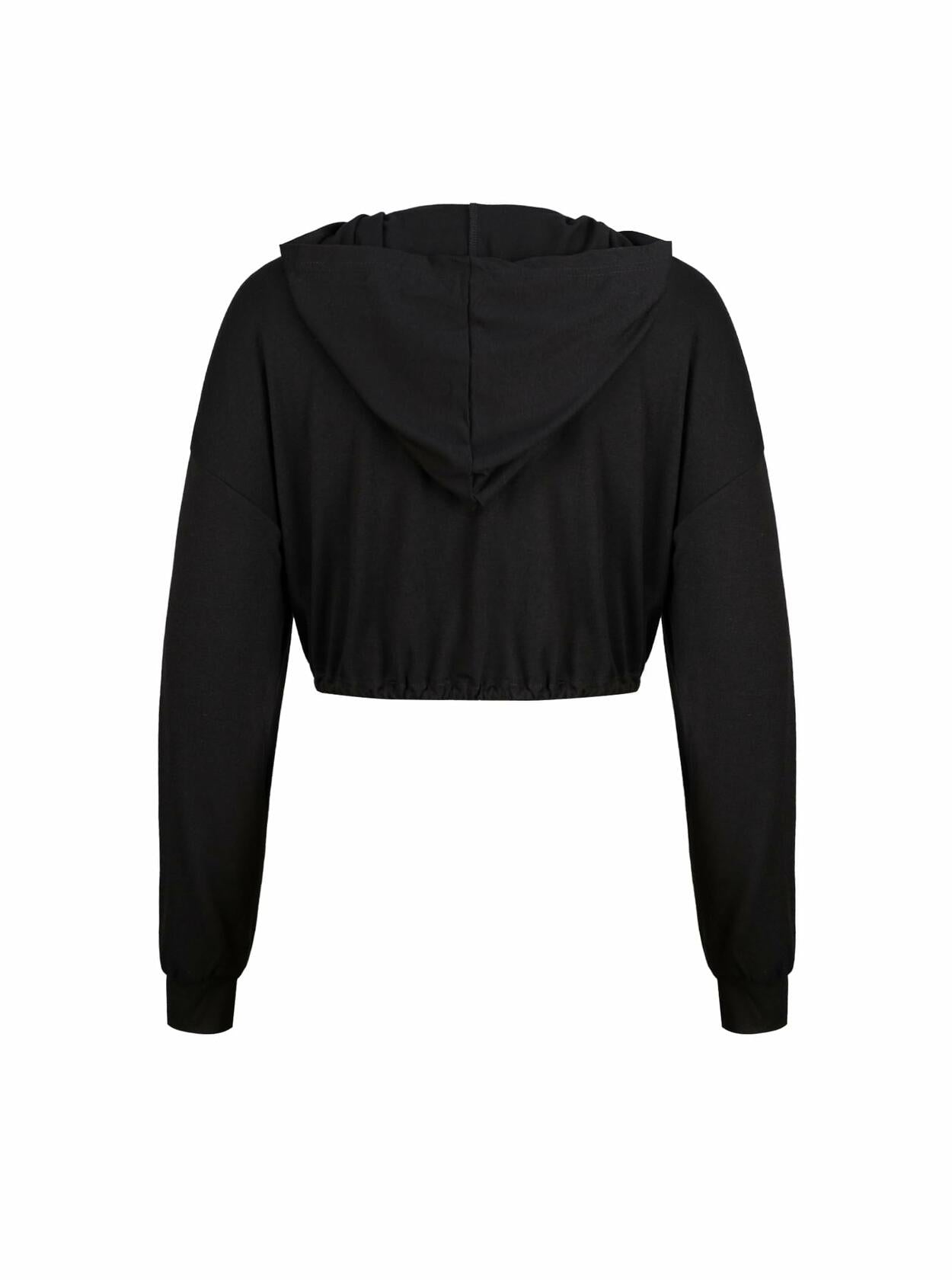 LovelyWholesale Womens Cropped Hoodie Long Sleeve Workout Top Black XL