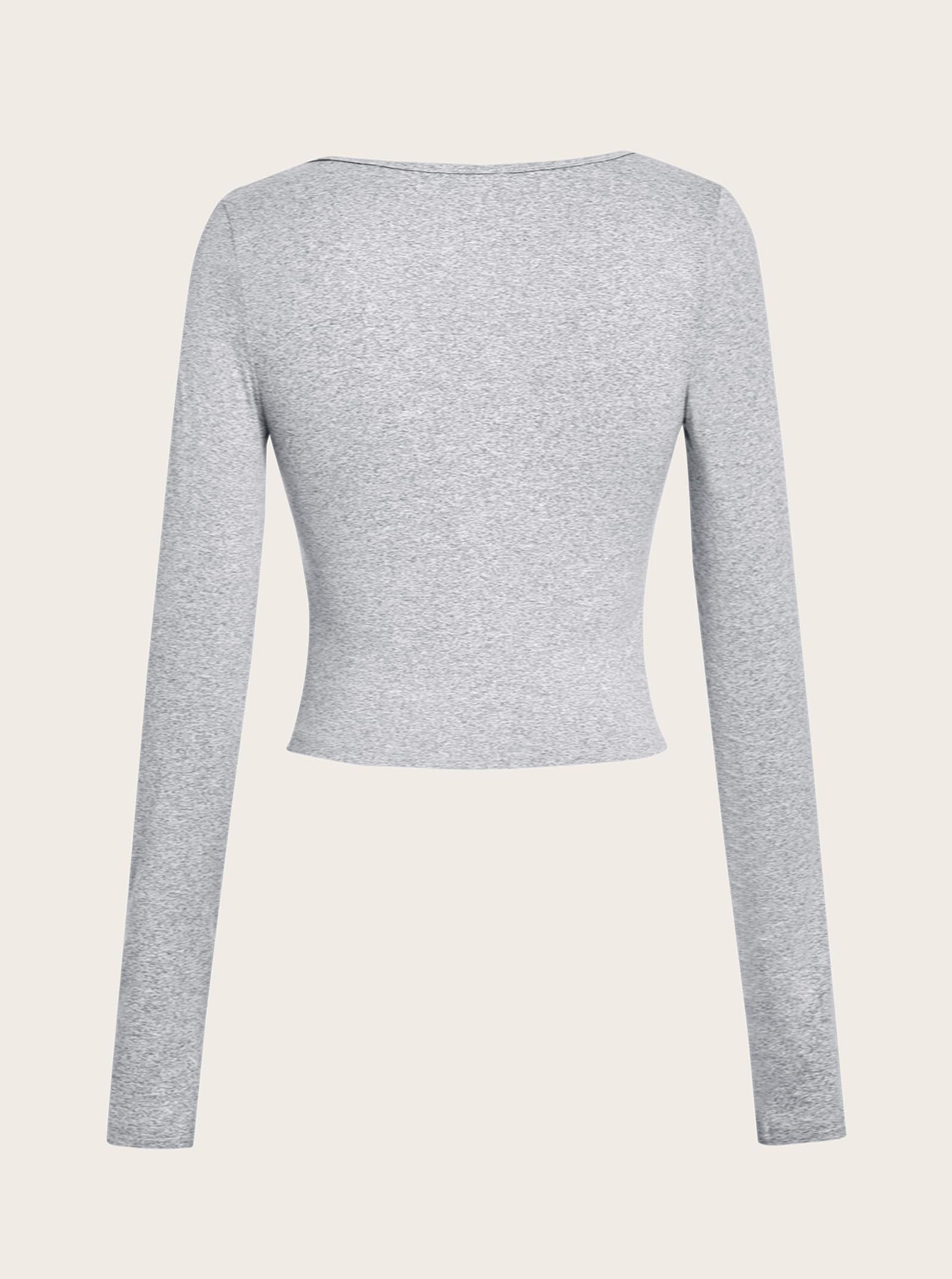 LovelyWholesale Womens Long Sleeve V Neck Crop Top Grey Size Large