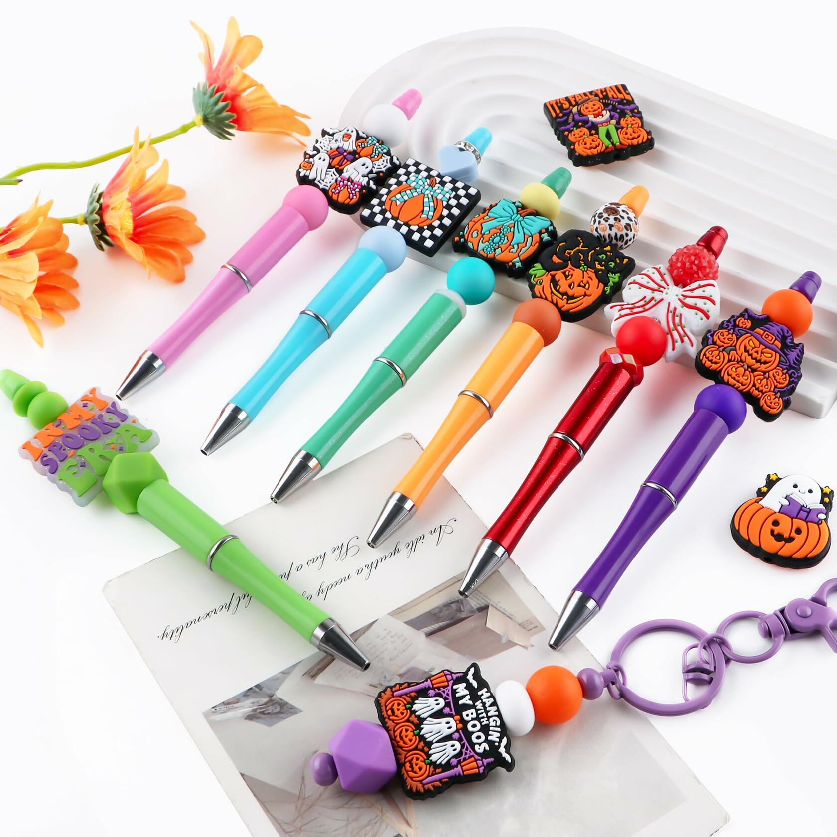 Lovyomi 12PCS Halloween Silicone Focal Beads Ghost DIY Pens Keychain Craft