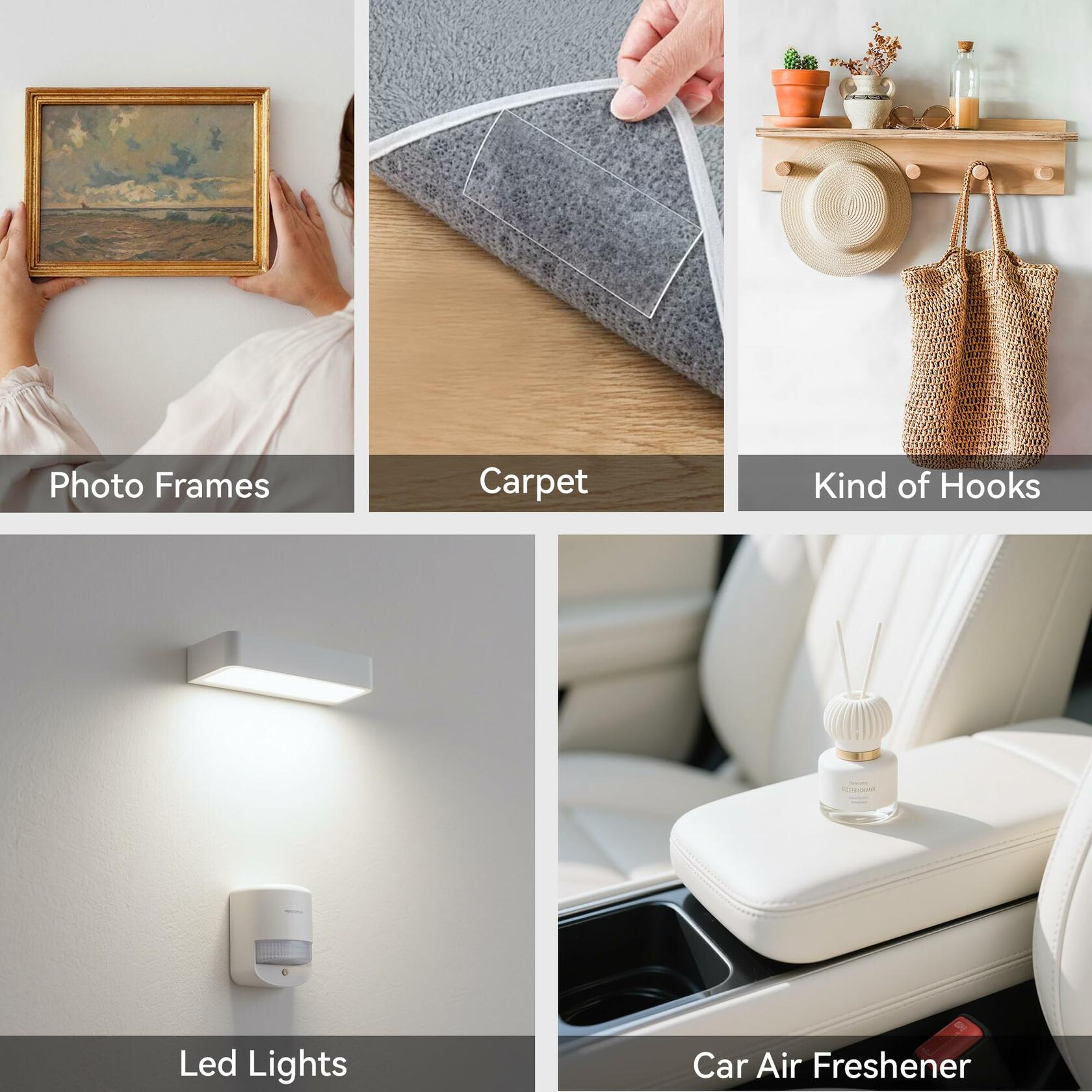 - Strong Adhesion Nano Tape:Our heavy duty double sided tape is made of premium acrylic gel via advanced nano tech with great holding power. This tape offers three times the adhesive strength of standard mounting tape. It can be trimmed to any size or length for customized applications.