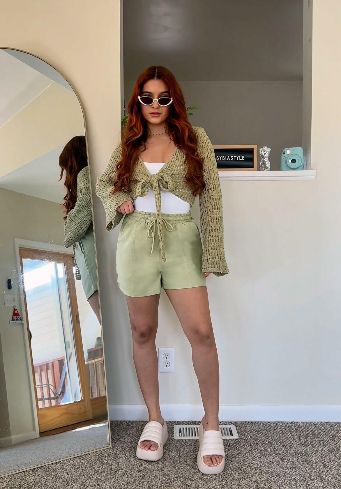 luvamia Women's Loose High Waist Lint Green Shorts Size Small