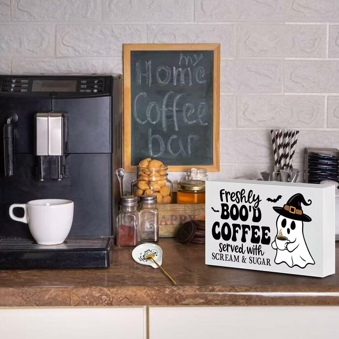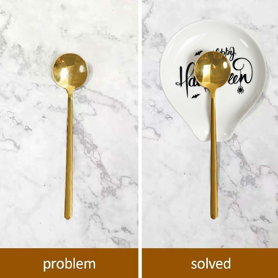 - Halloween Spoon Rest: Words Happy halloween with pattern bats and spiders, which elevates the halloween party favor!The spoon rest for coffee bar is microwave safe, heat resistant and dishwasher safe.