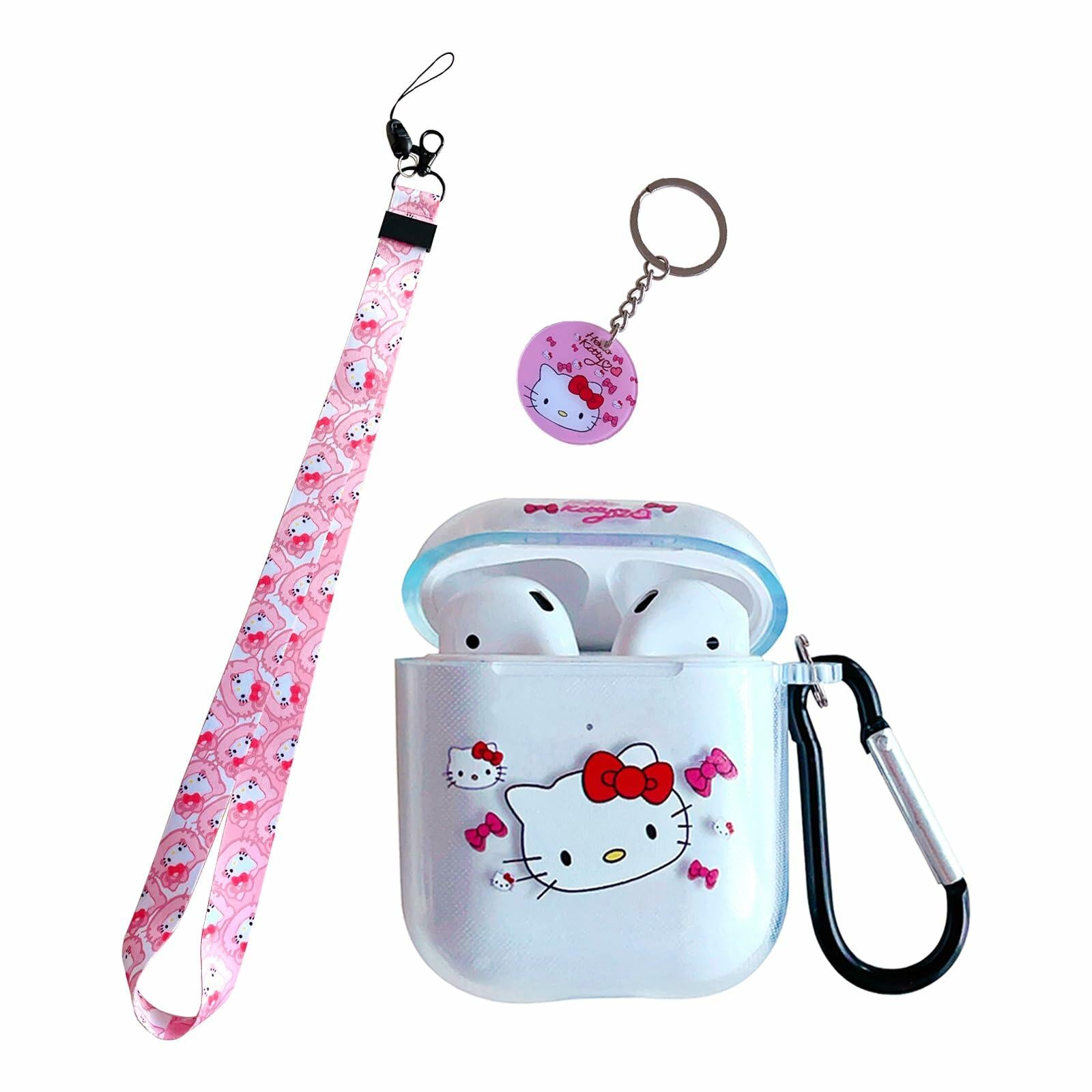 - ashion Design :Kawaii Cartoon cat package include Cute Keychain 1pcs Keychain 1pcs Lanyard Keystrap that ,1pcs Air%pod 1/2 Case,And Unique Style Design Breaks The Traditional Dull And Stylish Unique Charm