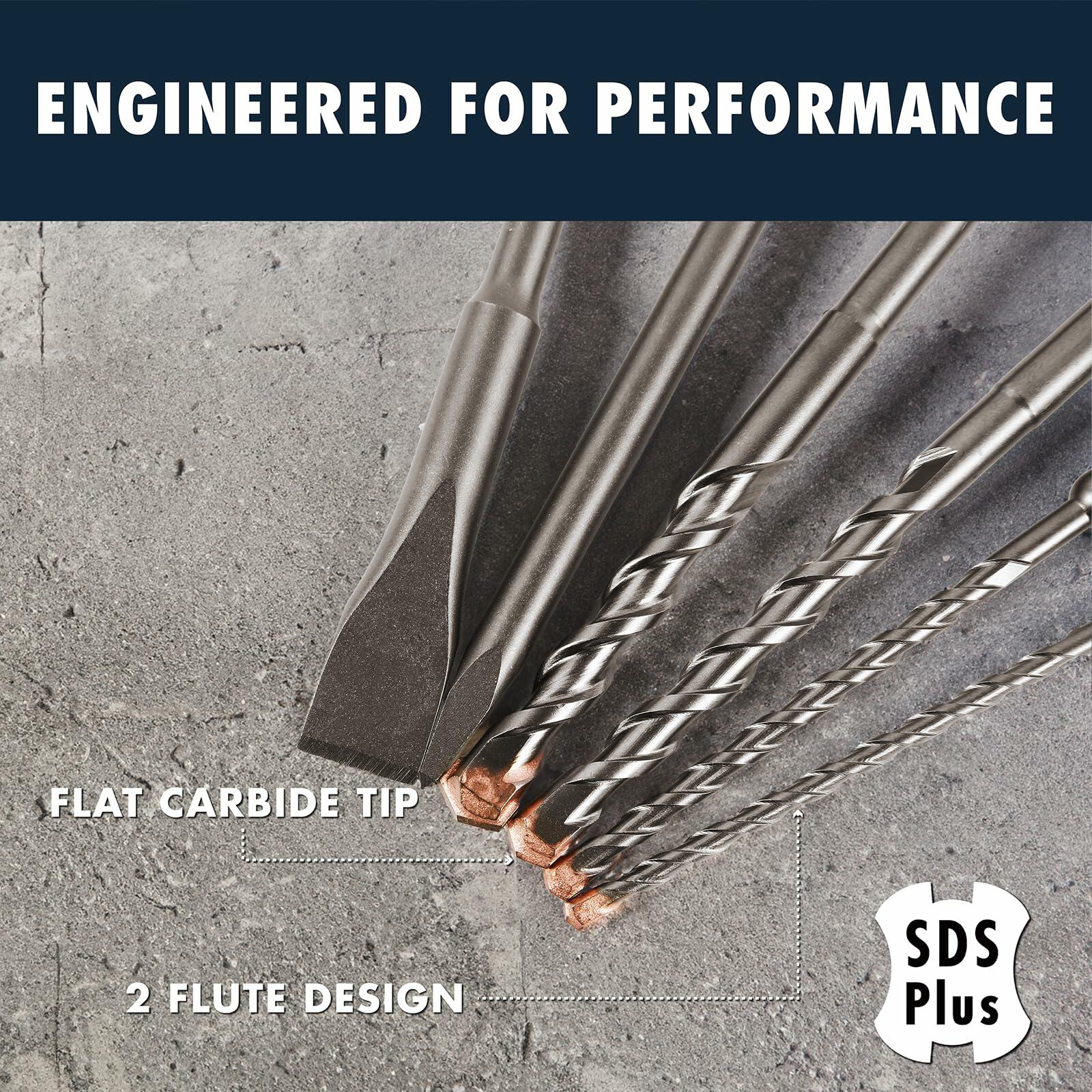 - VERSATILE: Bit set includes 3/16''x 6‘’, 1/4''x 6‘’, 3/8''x 6‘’,1/2‘’x 6‘’, flat chisel, point chisel.