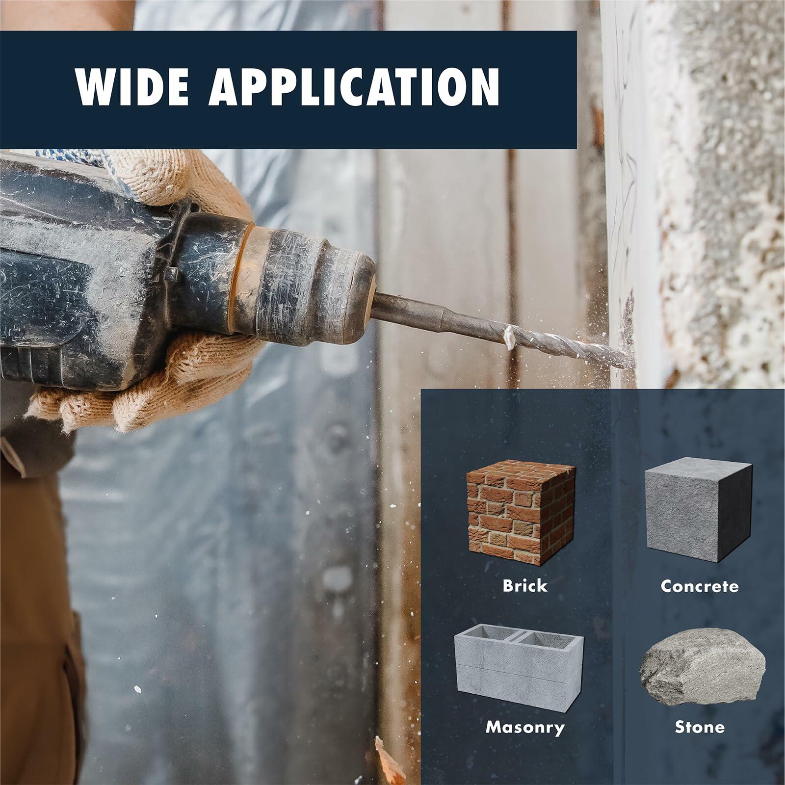 - ADAPTABLE: This Bit Set is perfectly suited for use with brick, concrete, cement, stone, mixed brick walls, and foam walls.