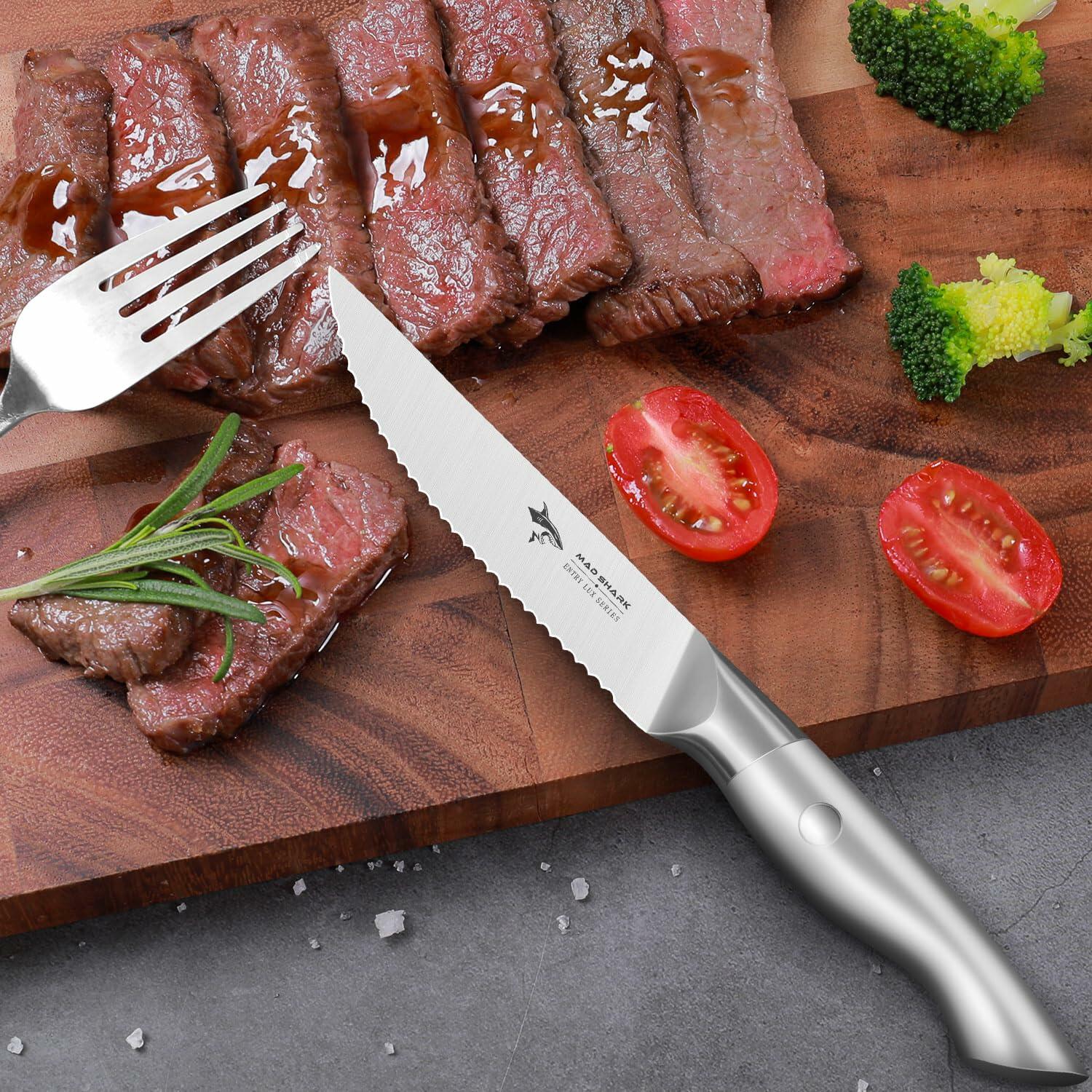 MAD SHARK Steak Knife Set 4 German Molybdenum Steel Razor Sharp Silver