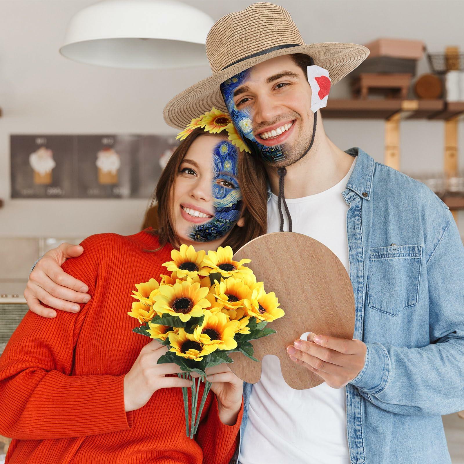 Features: Ideal for couple cosplay together: Our Halloween costume for couple allows men to cosplay the celebrity painter with gentle voice and bring happiness to the crowd, while women can act as the sunflower painting roles, full of creativity and fun Fun Painter Costume Kit: unleash your inner artist with the Costume Kit. This accessories lets you transform into the iconic Dutch painter, with a quality straw hat, sunflower headband inspired by his "sunflower vase" painting, this costume is allowing you to fully embody the character of Dutch painter Specifications: Material: Drawing board: wood Men's hat: grass Color: yellow Size: adult size Package includes: 1 x Men's hat 1 x Drawing board 1 Set of paintbrush 1 x Blood stained gauze, 3 x sunflower artificial flowers, 1 x sunflower headband Notes: Manual measurement, please allow slight errors on size. The color may exist a slight difference due to different screen displays.