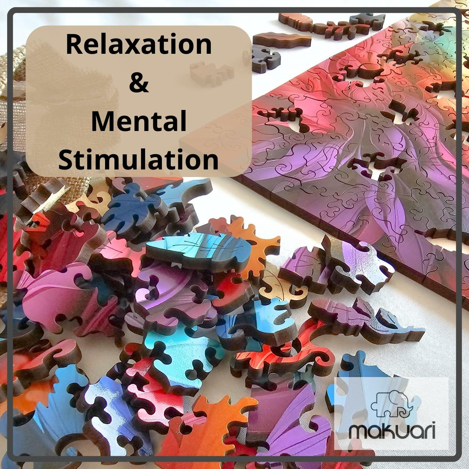 - RELAXATION AND MENTAL STIMULATION Engage your mind and spirit with this 200‑piece wooden puzzle for adults. Designed to calm the mind while boosting focus and creativity, it offers the perfect balance between relaxation and challenge. Build, breathe, and unwind as you complete each vividly colored feather in this mesmerizing design.