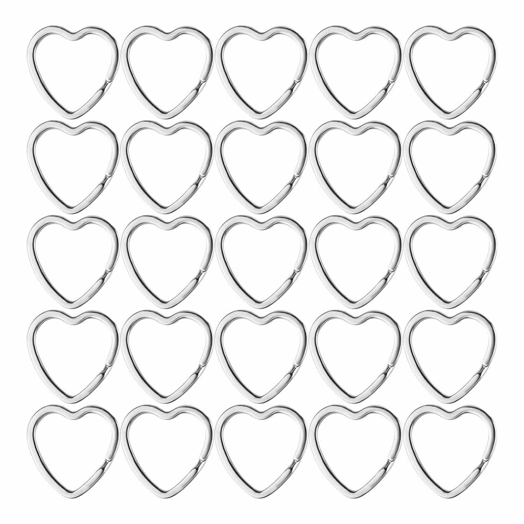 Mandala Crafts 1.2" Silver Heart Metal Key Rings 25 Count