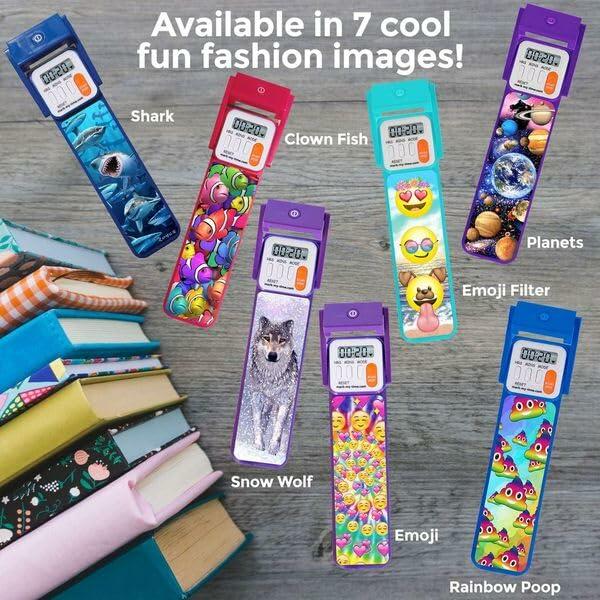 Mark-My-Time Digital Bookmark LED Book Light Timer 3D Planets Plastic