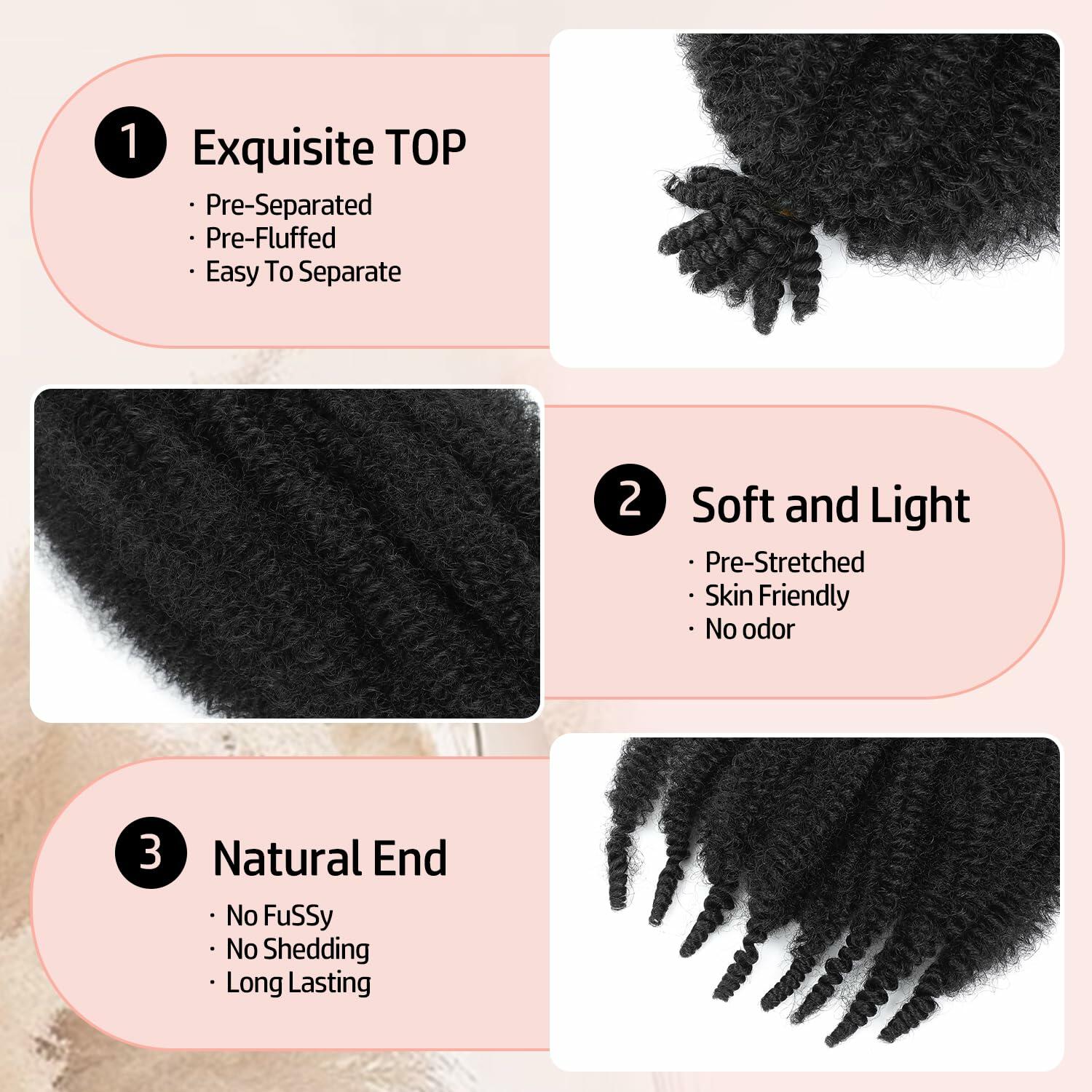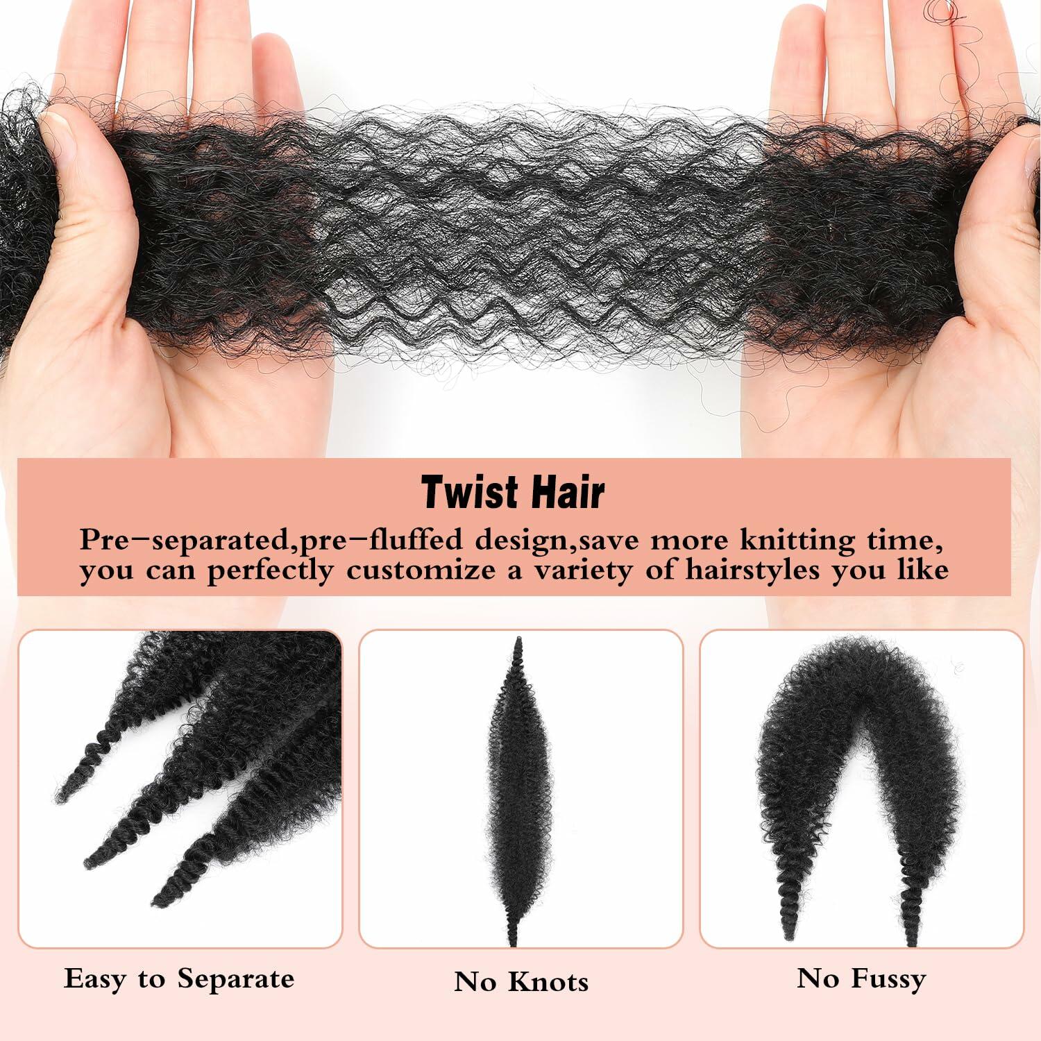 - 1. Advantages: Afro Twist Hair Made Of High-Quality Synthetic Fiber, The Hair Extensions Look Natural, Soft, Strong, Imitating Real Hair, Preventing Frizz, Tangling And Shedding, Bringing A Long-Lasting And Smooth Effect.