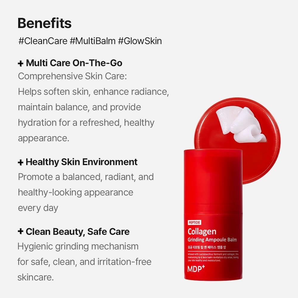 MDP+ Red Lacto Collagen Grinding Face Ampoule Balm Stick 14g Vegan Wrinkle Care