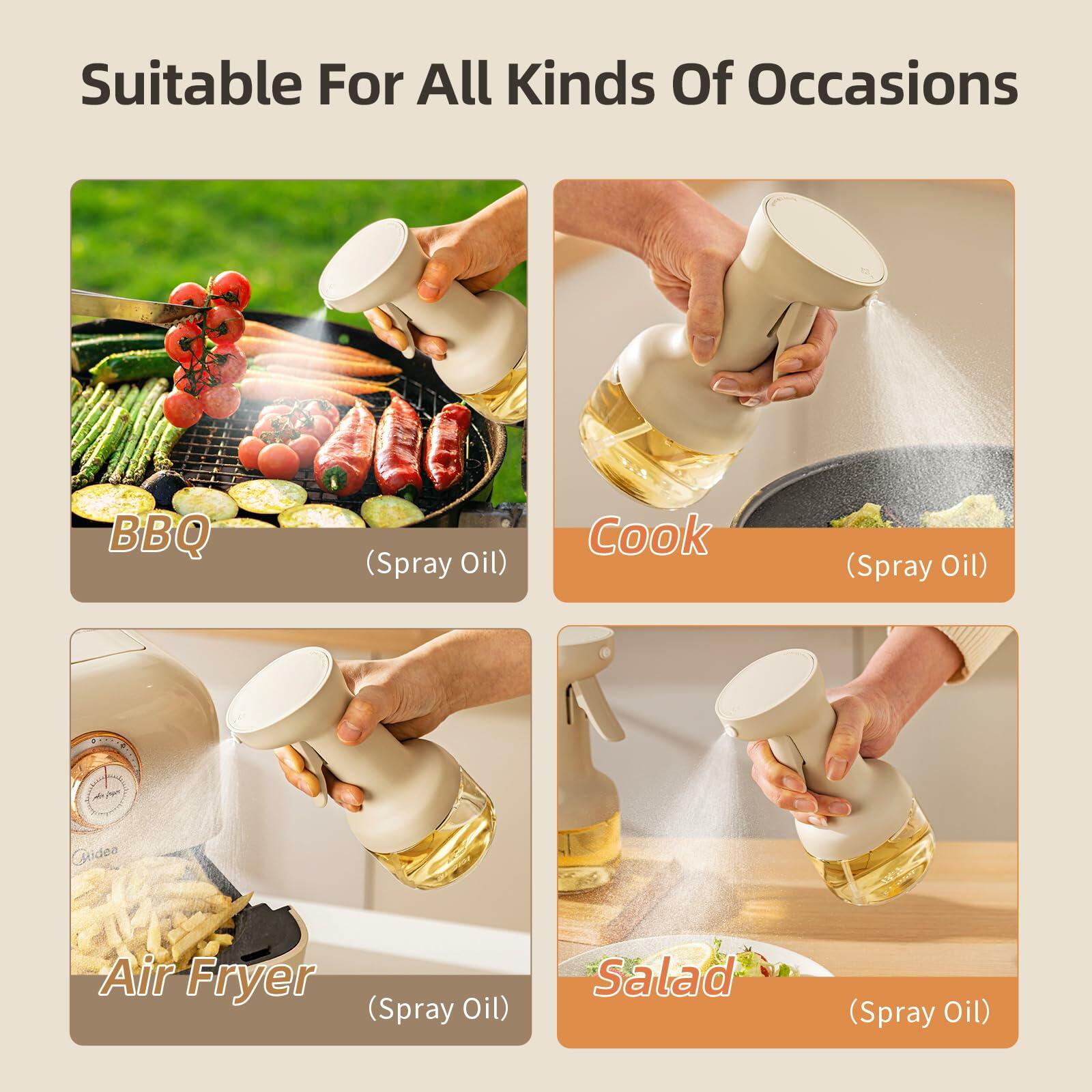 - Ergonomic & Stylish: The oil sprayer for cooking is designed with a comfortable grip and modern aesthetics, making it a perfect addition to any kitchen or for outdoor BBQs