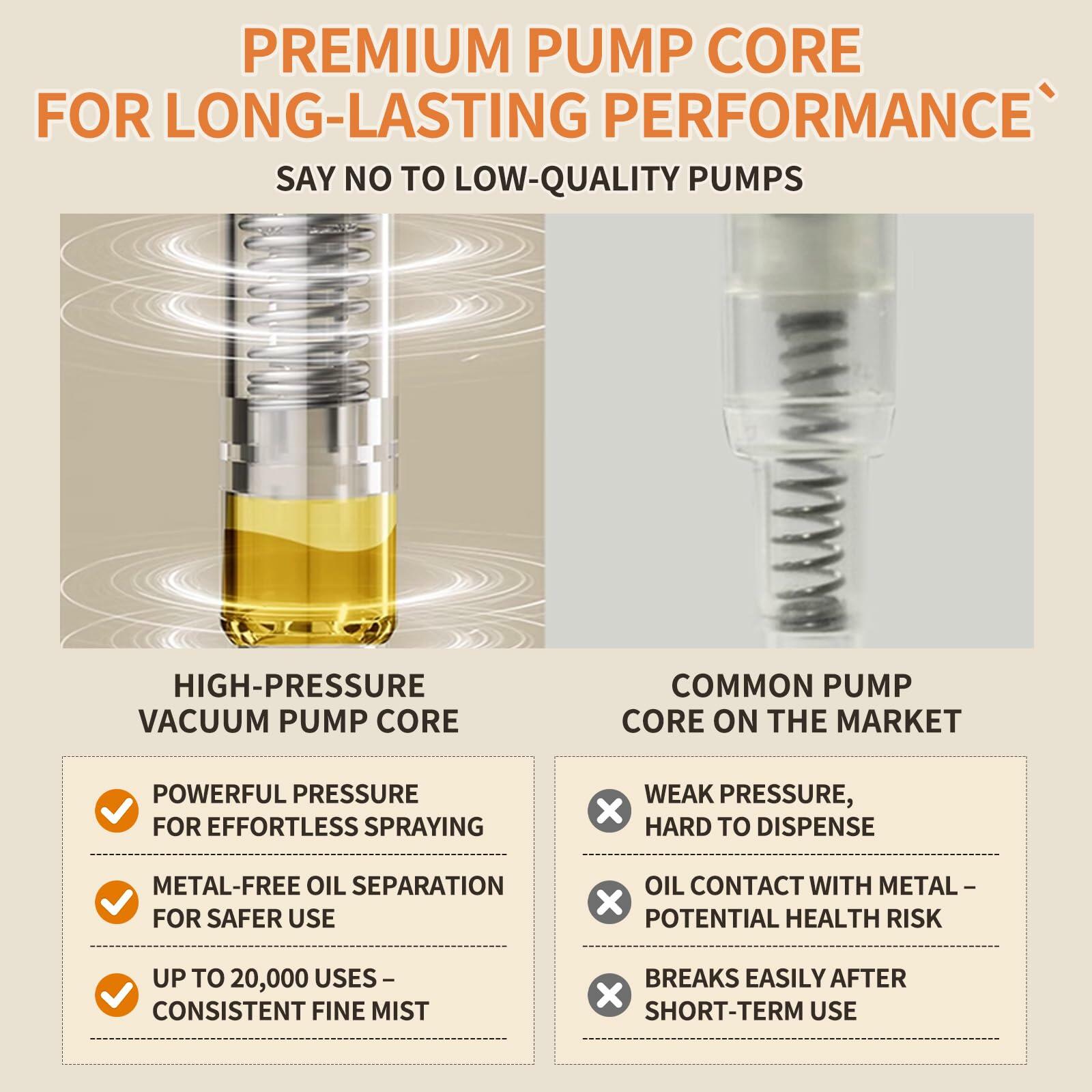 - Non-Clogging Filter: The oil dispenser built-in filter system prevents clogging and ensures smooth spraying even with infused or thicker oils