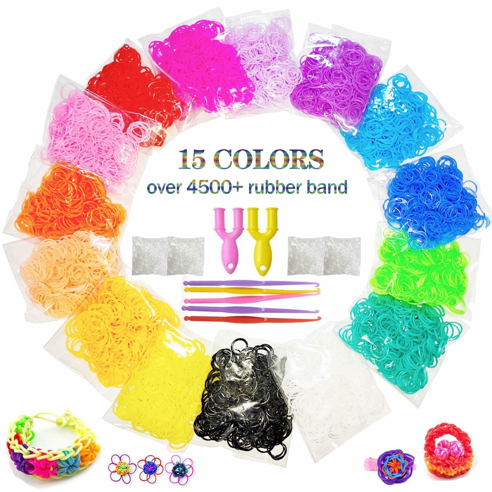 - 15 SOLID COLORS RUBBER BANDS: Rubber band bracelet making kit with 4500+pcs of rubber bands in 15 colors, 200pcs S-clips 2Pc Y-loom and 5pcs hooks
