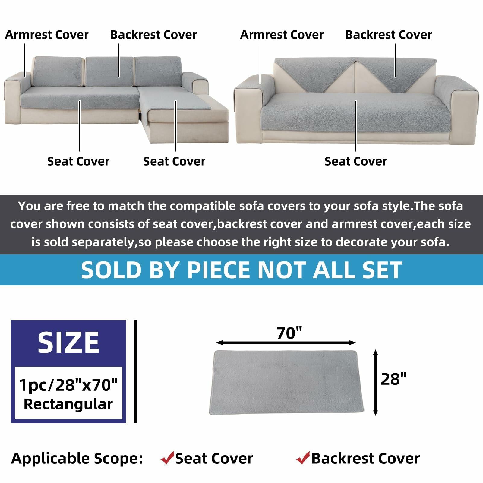 - THICK AND CUSHIONY: Sofa covers are made of sherpa fleece,which is very soft and comfortable.Sold by piece but not set,good for your adjustable sectional sofa & couch