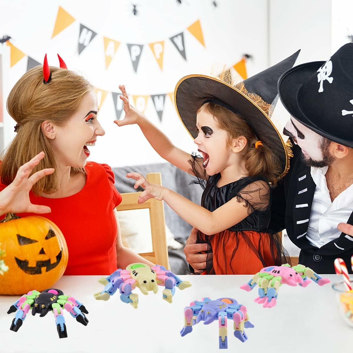 - Halloween Fidget Toys: 4 pack of Halloween spiders fidget spinners (5.2 x 3 inches), Multi-colors of spiders, Happy Halloween party favors.