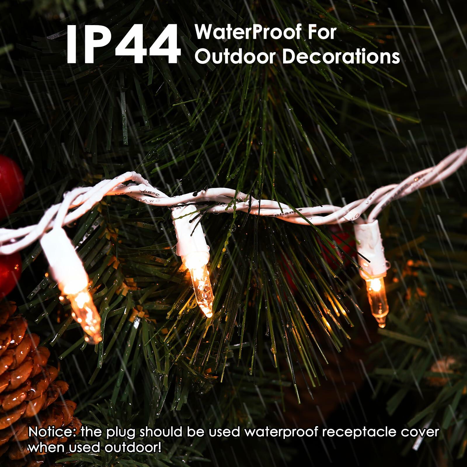 - IP44 WATERPROOF&HIGH QUALITY:IP44 Waterproof designed white christmas lights are perfect for both indoor and outdoor decorations.All of our christmas lights are constructed with high quality material and designed to withstand rain or snowstorm,so you can confidently leave them on display through summers and winters.