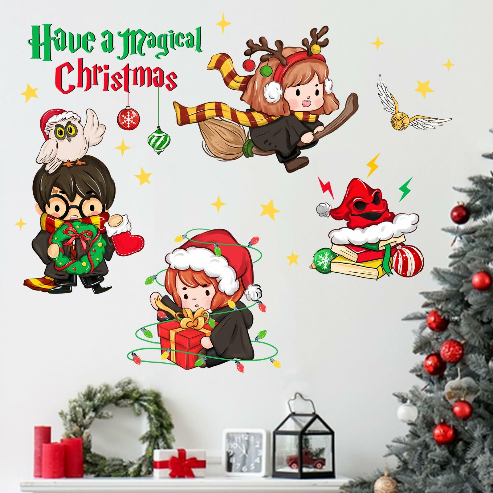 Mfault Magical Christmas Wall Decals Stickers Xmas Wizard Owl Decor