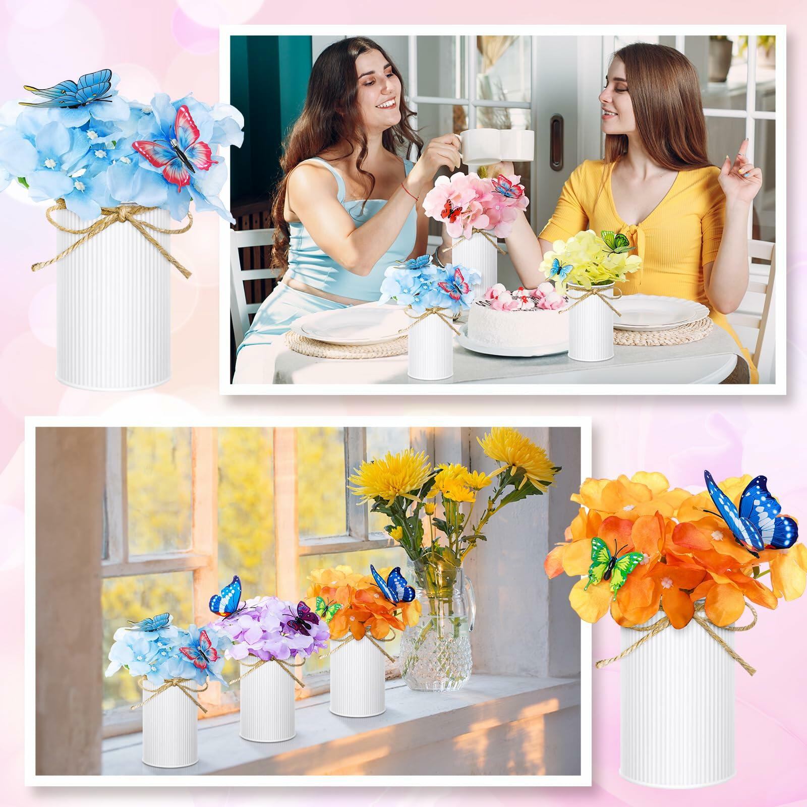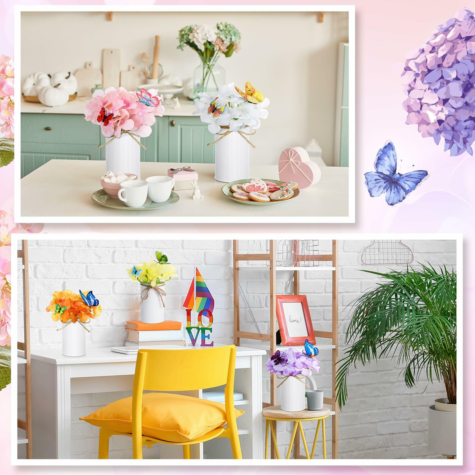 - Quality Material: Spring flower table centerpiece is made of silk, galvanized metal pot and jute bow; The silk flowers are beautifully crafted and have realistic effects; Vase is made of galvanized metal, which is sturdy and colorful, not easy to be damaged and rusted; 3D butterfly stickers feature removable glue for easy daily use and won't leave marks or stick to the wall