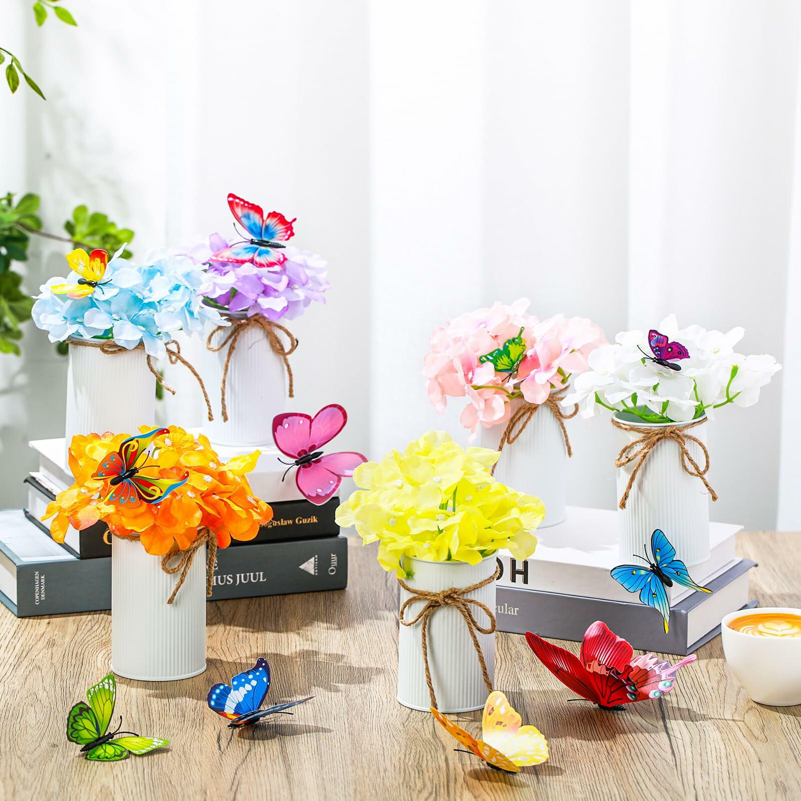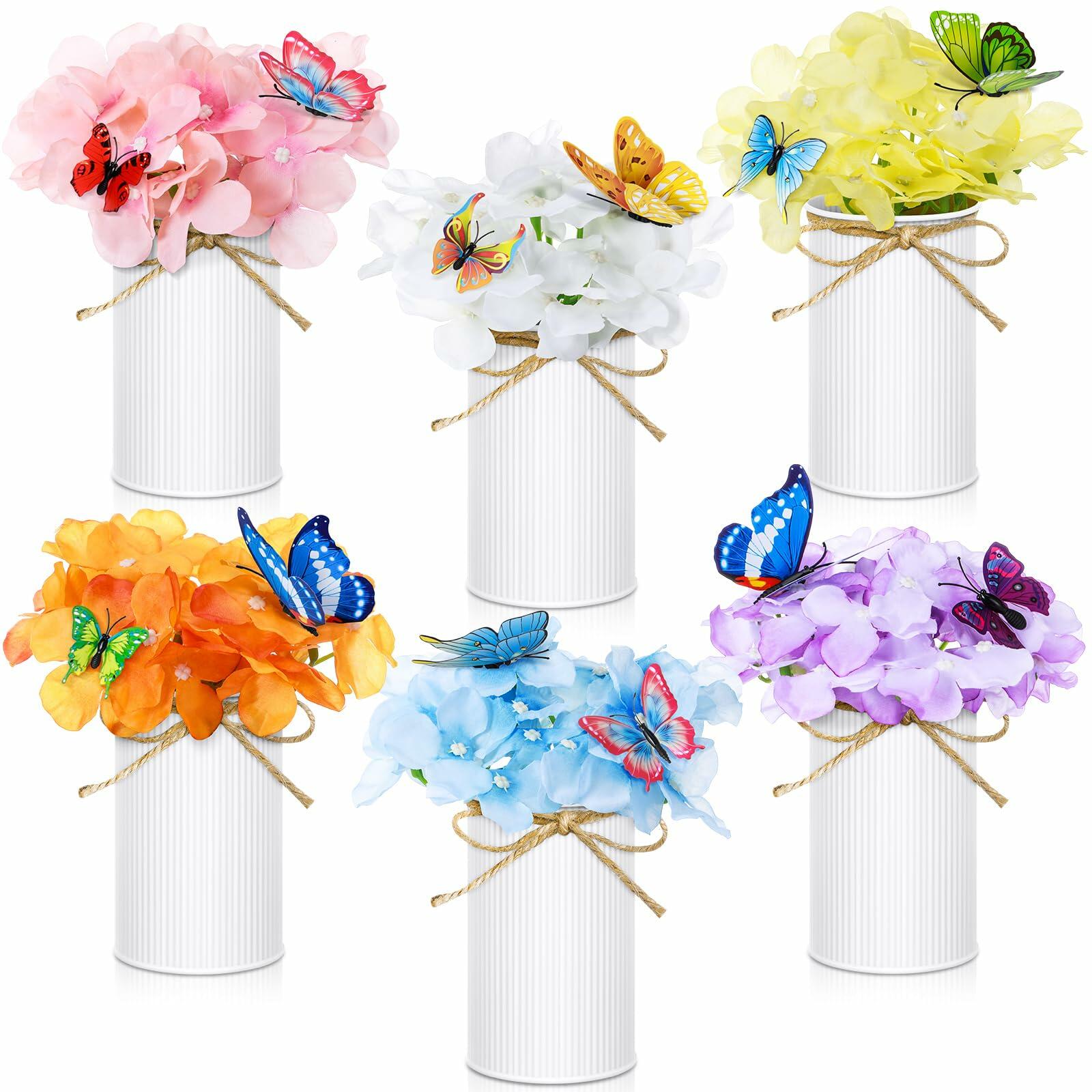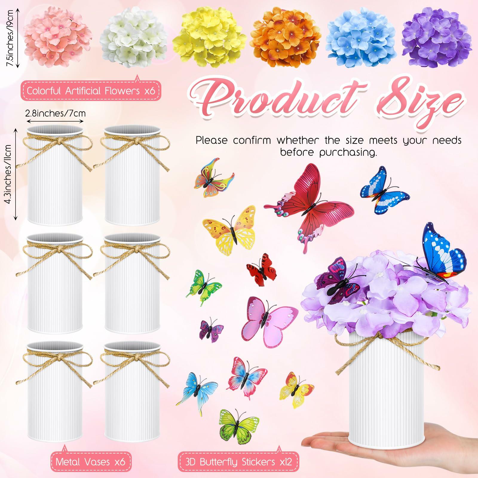 - Package Contents: you will receive 6 galvanized metal pots with jute bows, 6 silk artificial flowers in different colors, 12 single layer mixed color 3D butterfly stickers; The items in the kit are enough for you to match your favorite retro spring flower decorations