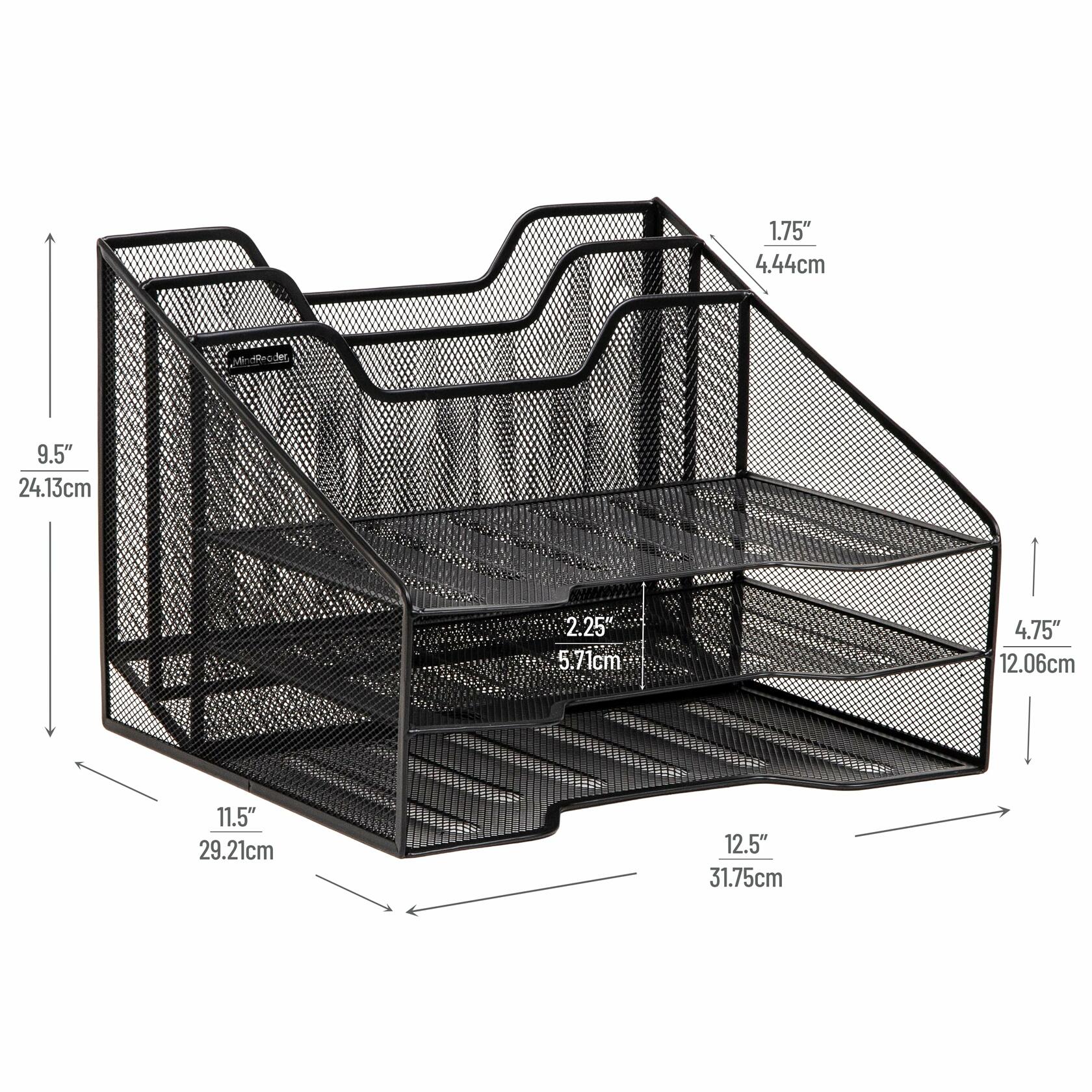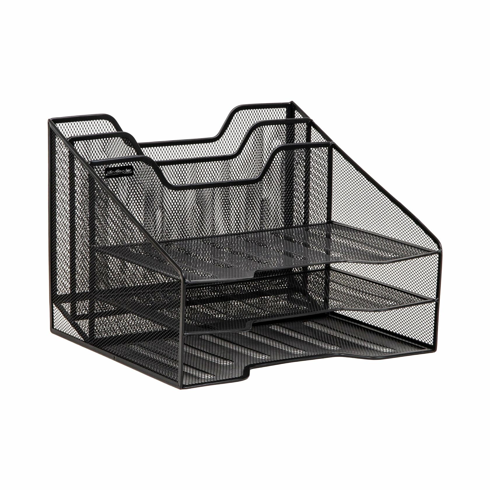 Mind Reader Metal Mesh 3-Tier Desktop File Organizer 5 Compartments Black