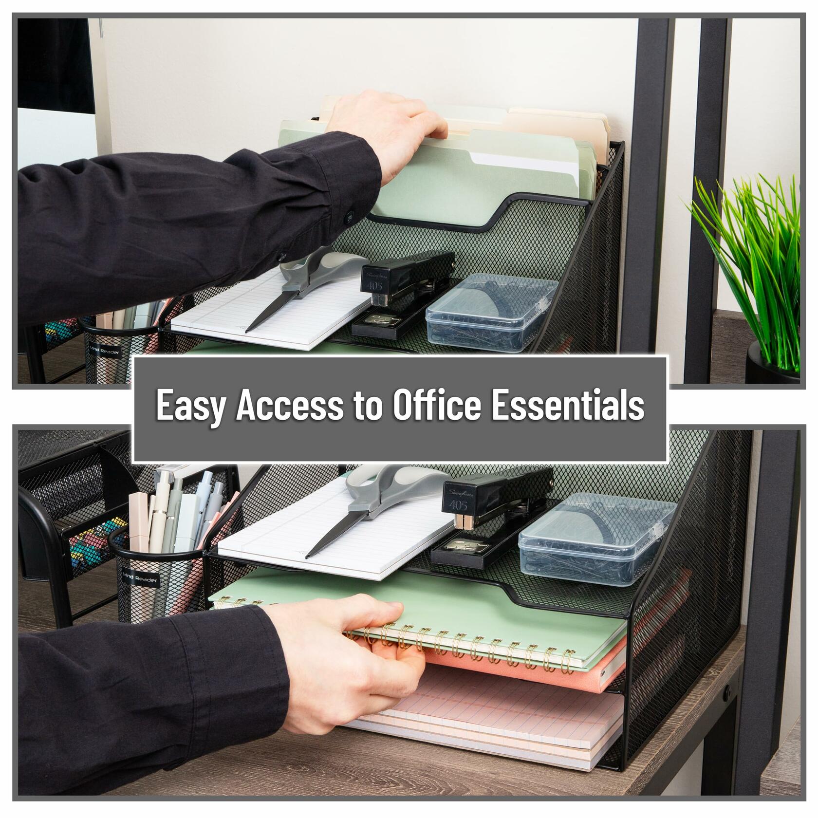 - Efficient 5-Compartment Design: Features 3 horizontal trays and 2 vertical slots for sorting papers, mail, and office supplies
