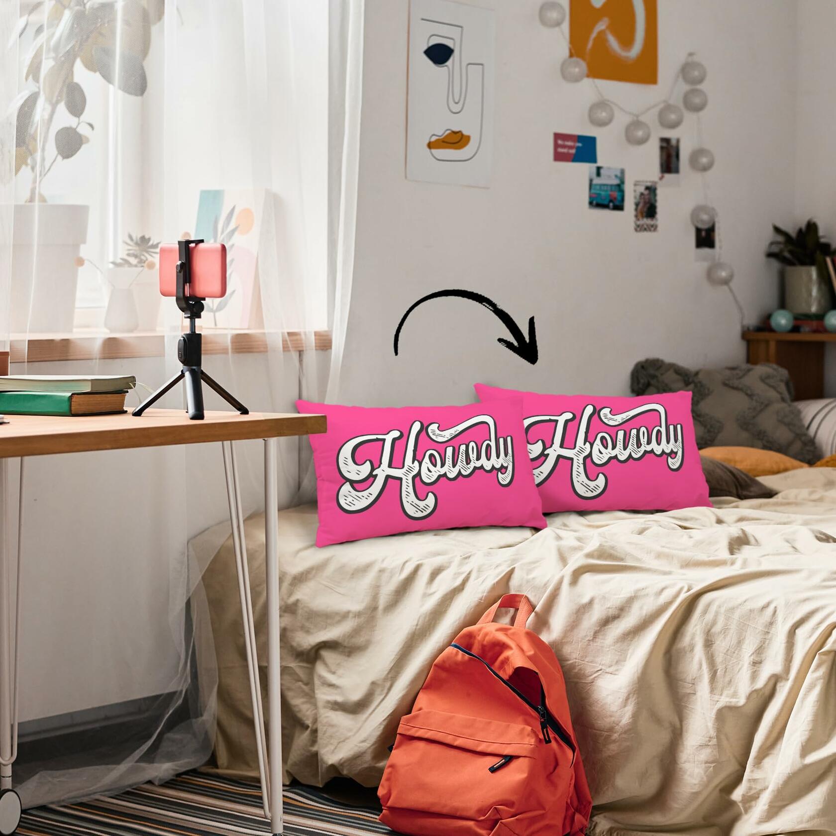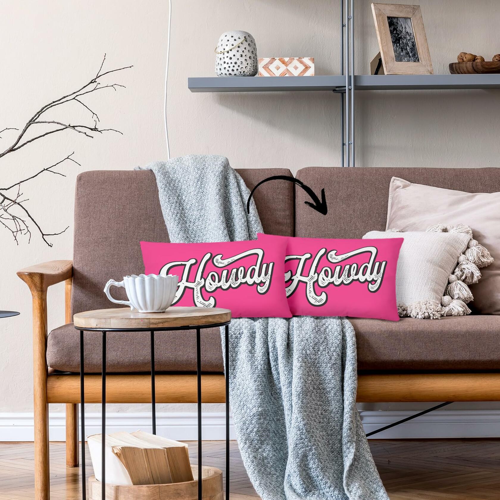 Mingnei Pink Howdy Flannel Throw Pillow Cover 12x20 Couch Cushion