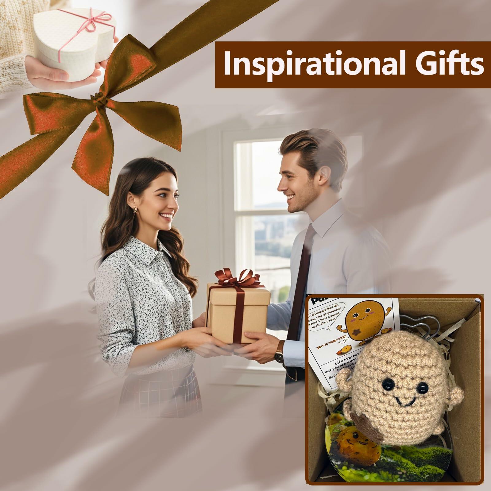 - 1. HAND-KNITTED POSITIVE POTATO WITH AFFIRMATION CARD Each 3-inch Crochet potato comes with a cute star symbol and an inspiring "You’ve Got This!" card to remind you or a loved one that everyone shines in their own way. Perfect for spreading daily positivity!