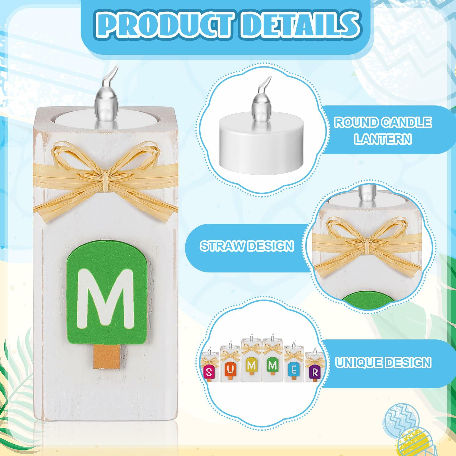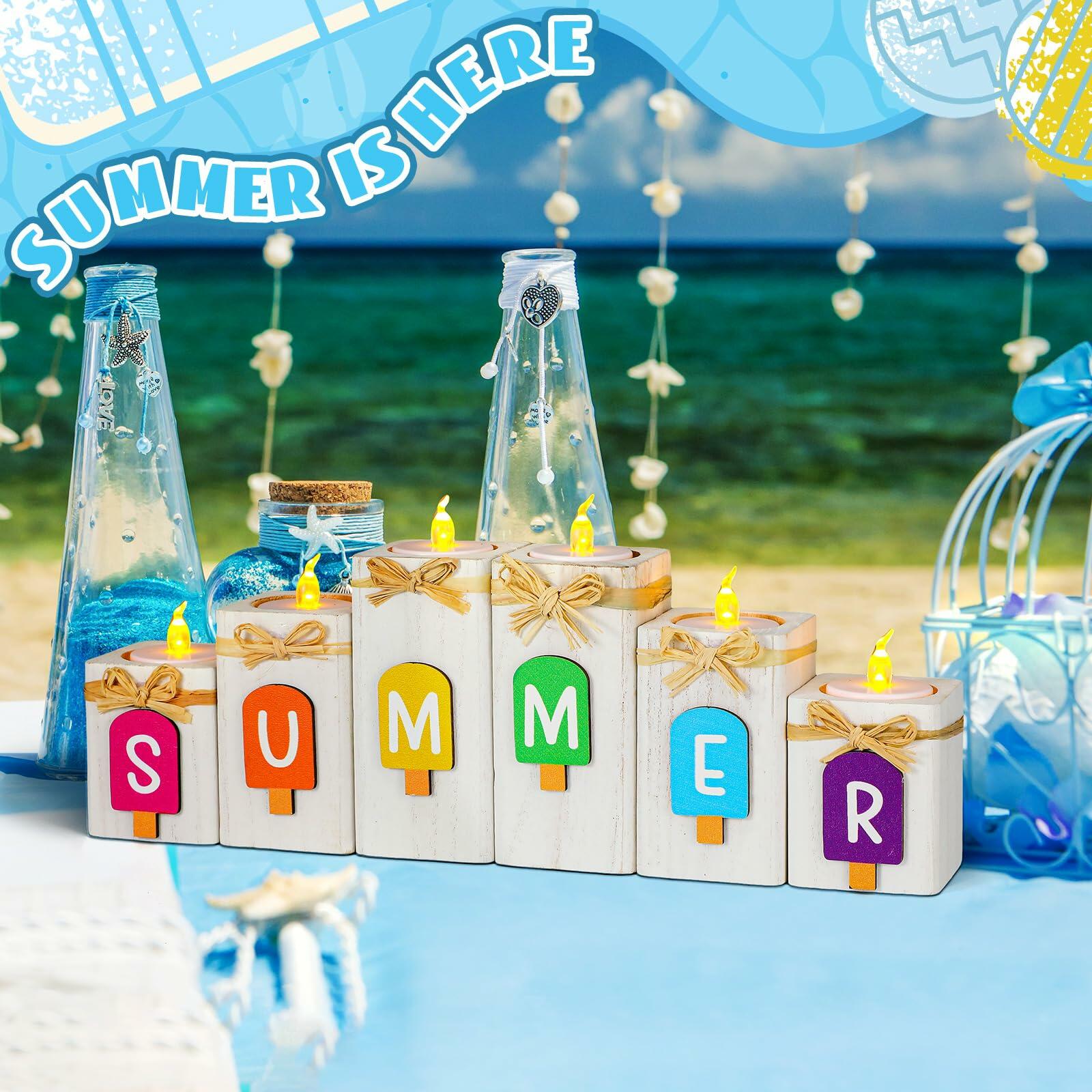 - Summer Decoration: these wooden candles are all about celebrating summer in style; Bearing summer ice cream design, each comes adorned with a [SUMMER] tag and a charming grass rope bow, merging elegance and sentiment in a delightful way; These hues complement summer themed decorations impeccably