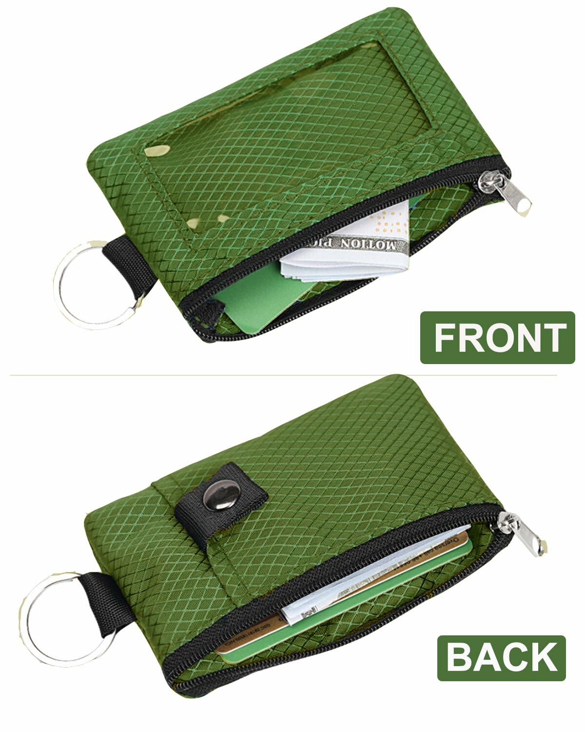 Minimalist Wallet RFID Blocking Keychain Lanyard Zipper ID Case Olive Green