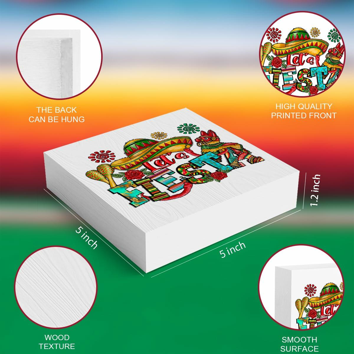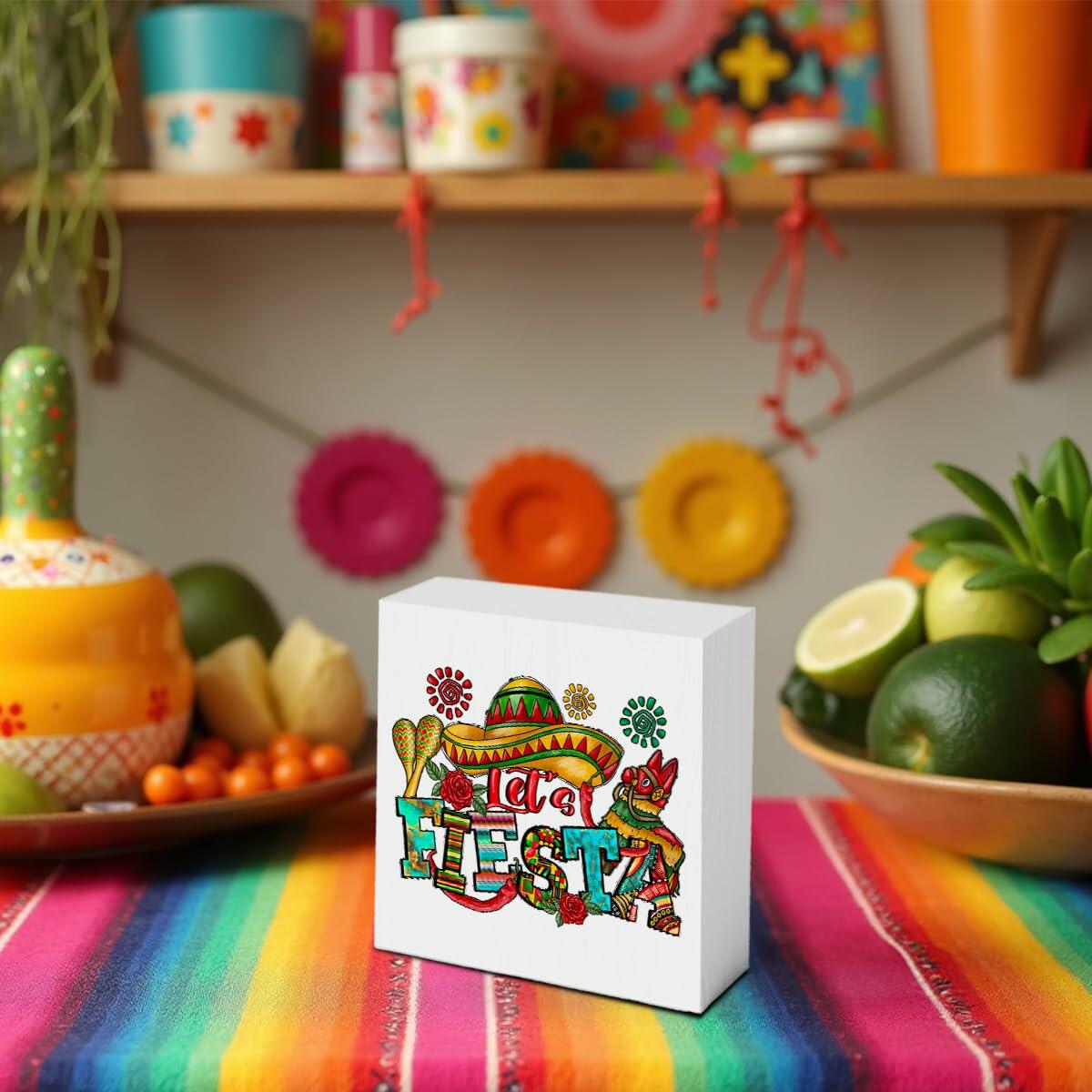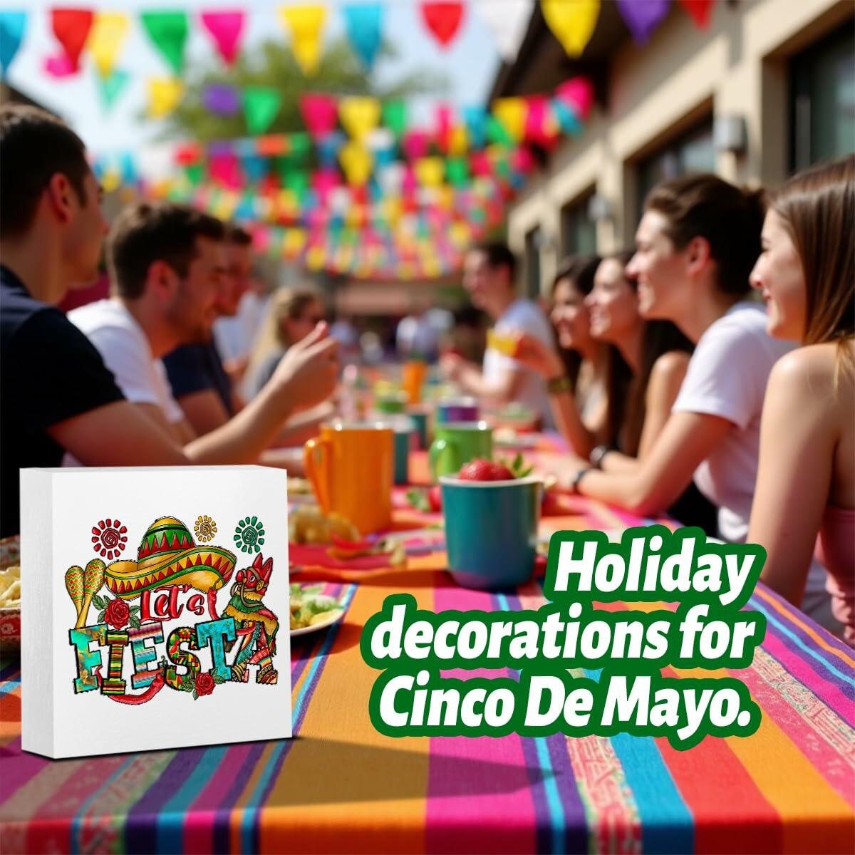 MIOOKISS Cinco De Mayo Mexican Fiesta Rustic Wooden Box Sign 5x5 Let's Fiesta