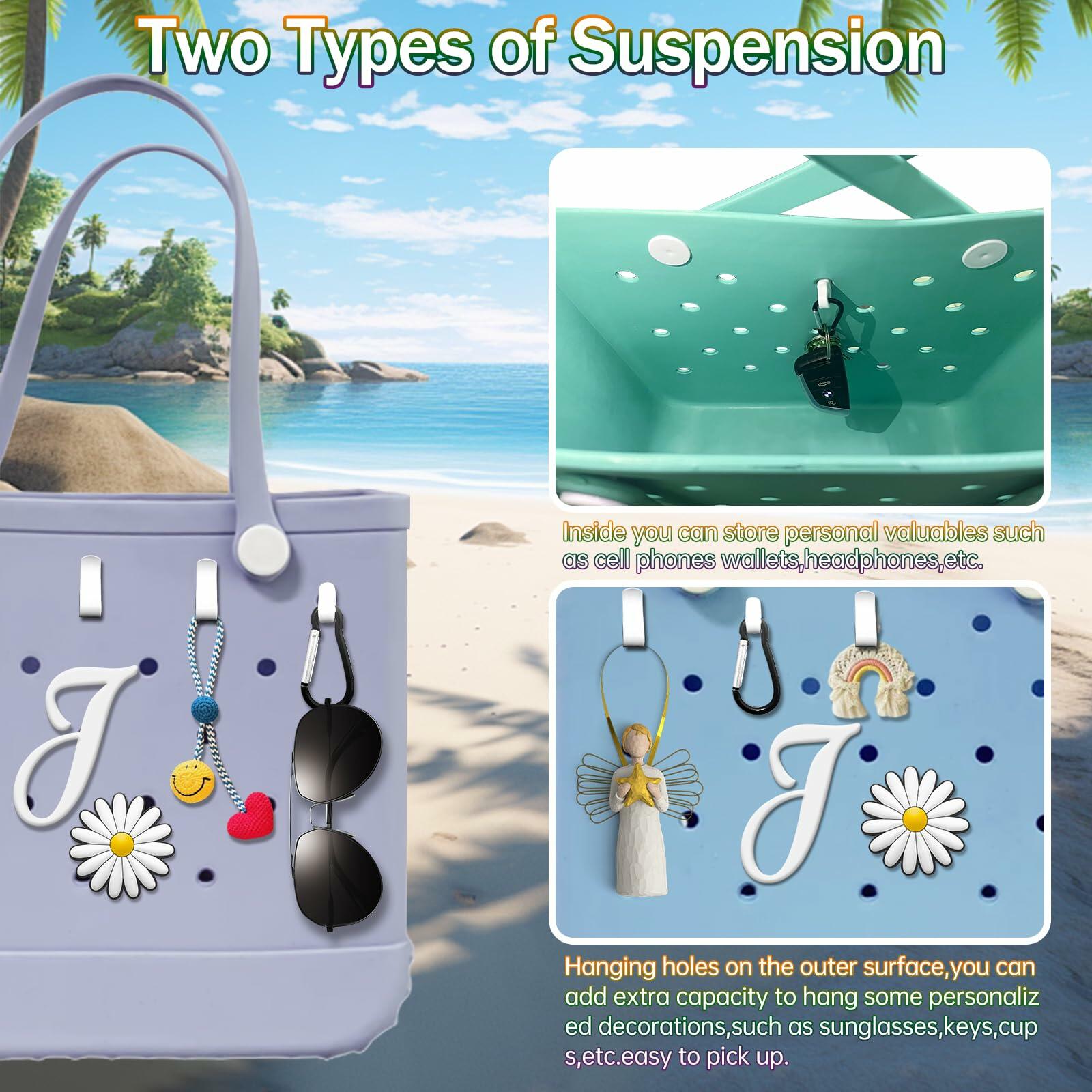 - Multi-functional: Package includes letter charm*1, flower charm*1, hooks*2. Elevate your Bogg Bag's style game with these chic charms. They're not just functional but also serve as fashionable accessories, allowing you to express yourself and stand out from the crowd. Help you finding keys sunglasses easily