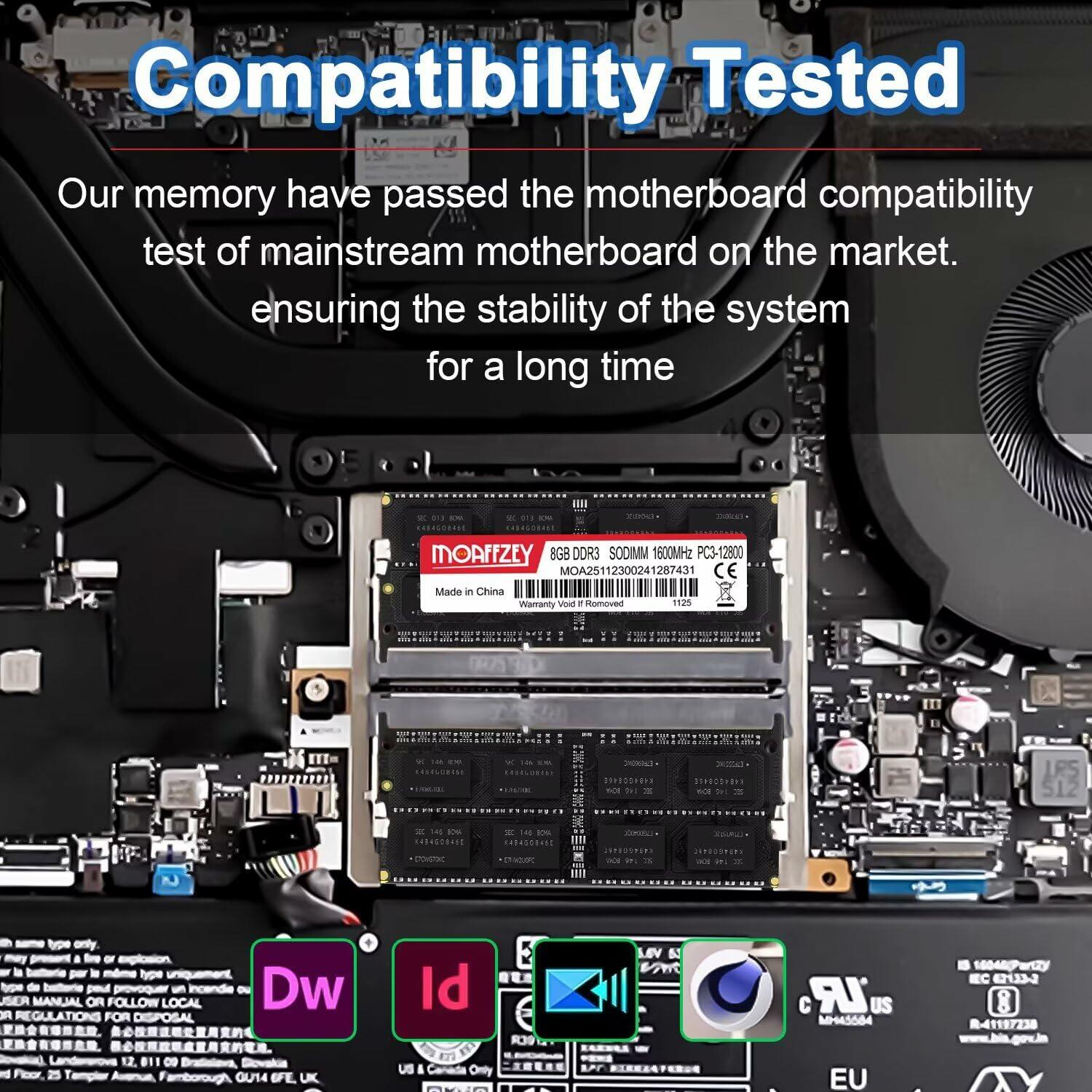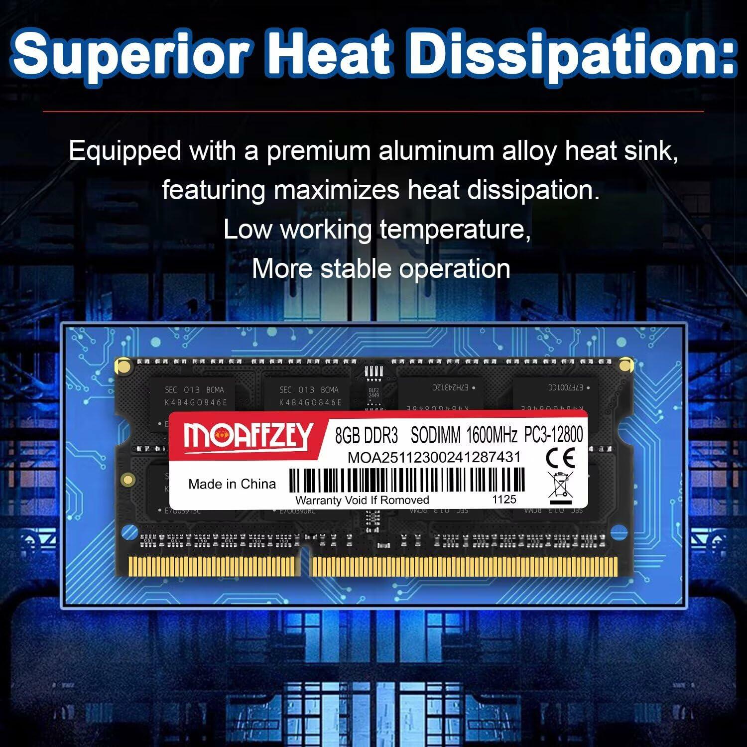 Moaffzey 8GB DDR3/DDR3L RAM 1600MHz (PC3-12800) CL11 Laptop Memory SODIMM , 204-Pin 1.35/1.5V 2Rx8 Dual Rank Non-ECC Unbuffered Laptop Notebook RAM Upgrade - Black