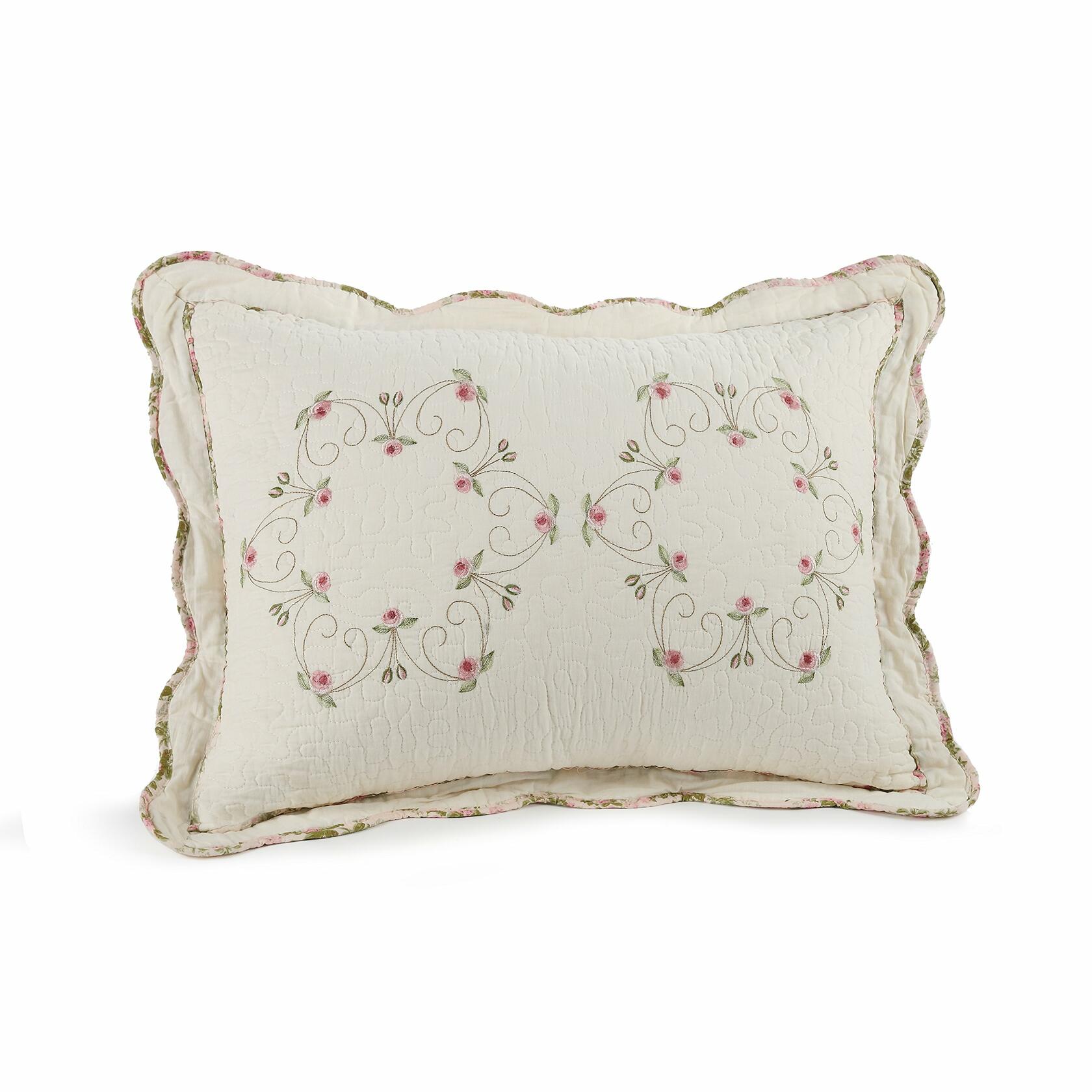 Modern Heirloom Felisa Floral Embroidered Quilted Pillow Pink/Ivory Size King