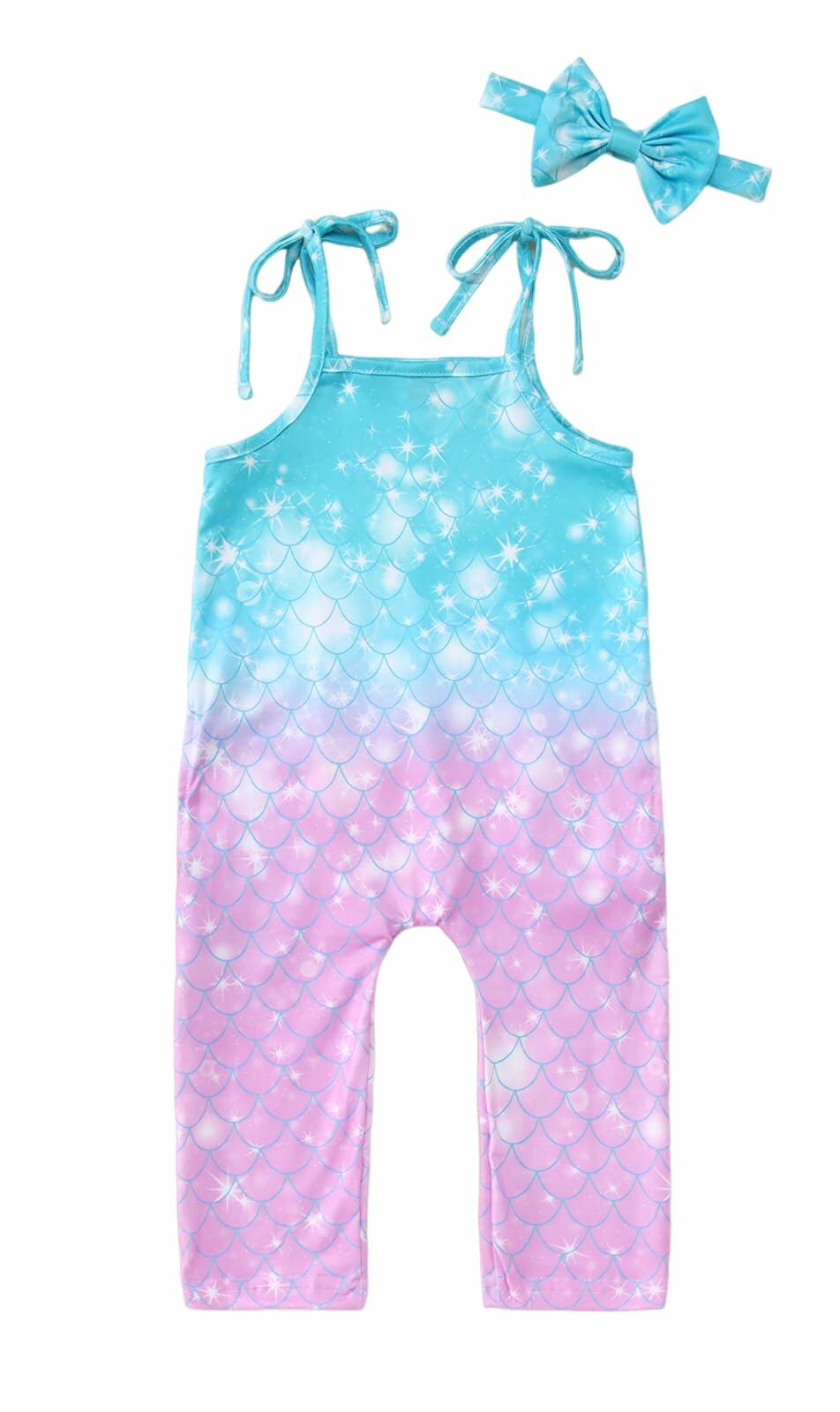 MODNTOGA Toddler Sleeveless Jumpsuit BluePurple Mermaid 18-24M Romper Set