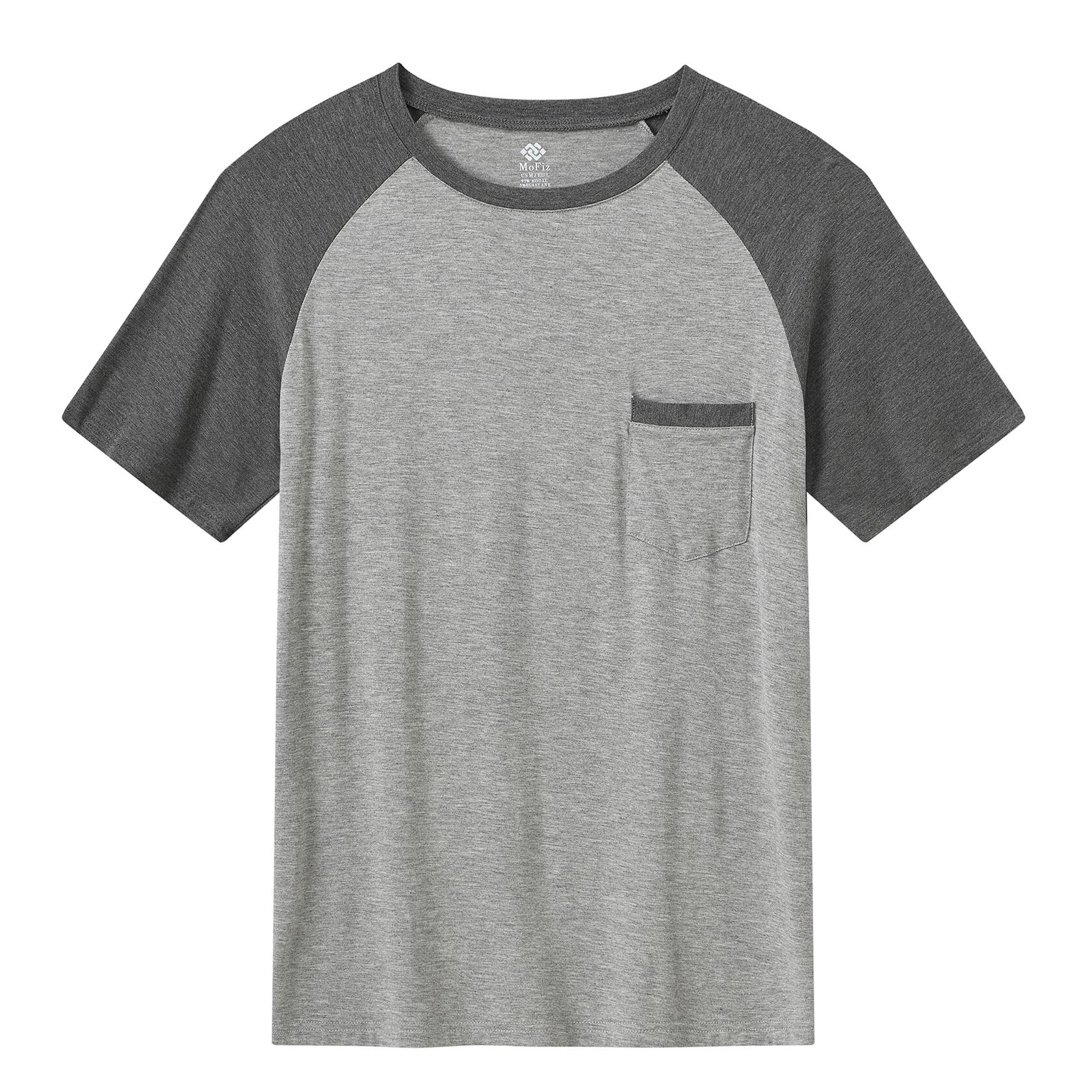 MoFiz Men's pajama set summer sleepwear short sleeve with v-neck t-shirt shorts, lightweight, quick dry, smooth. soft fabric wiith good elasticity and moisture wicking. Two side pockets with 5" shorts. Tag-free at the back neck, elastic waistband and adjustable drawstring. Men's Pjs nightwear great for summer home wear, sleep wear, exercise, fitness, sports, running, yoga, walking, daily work.