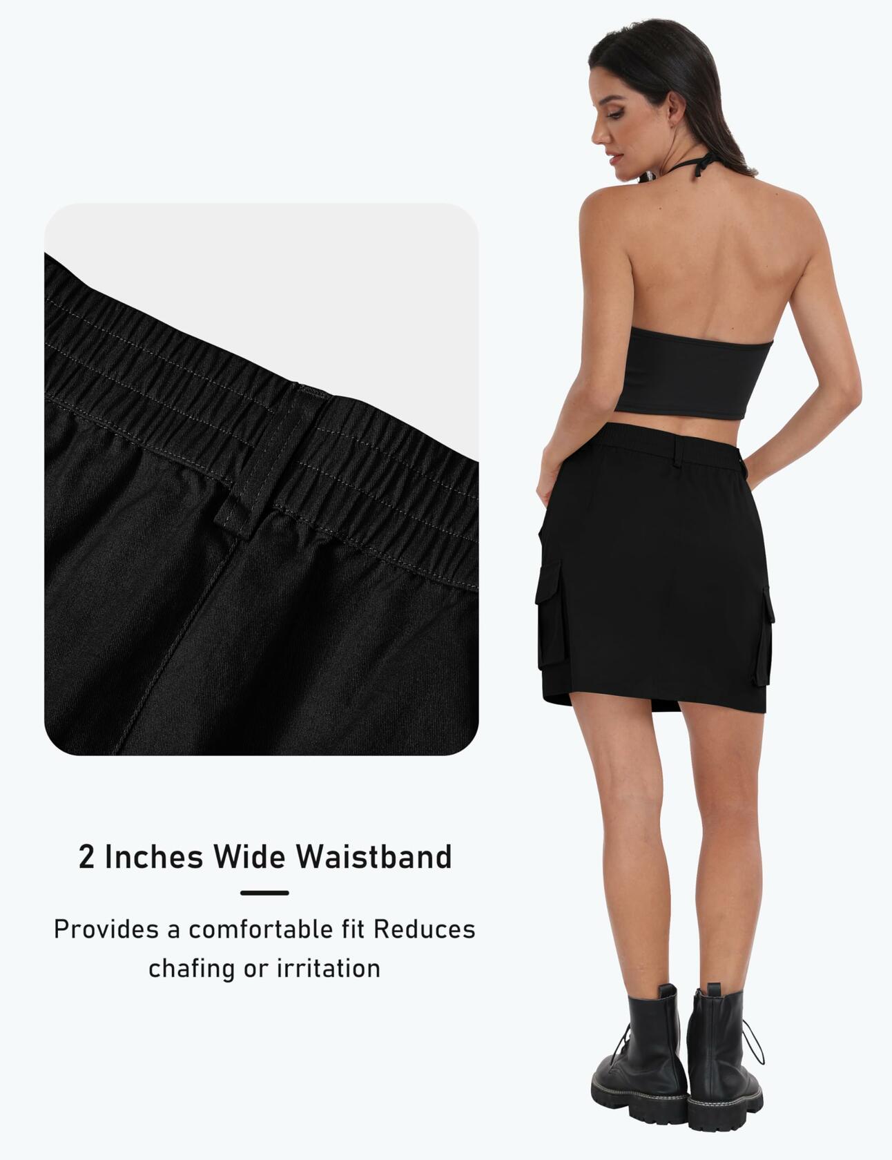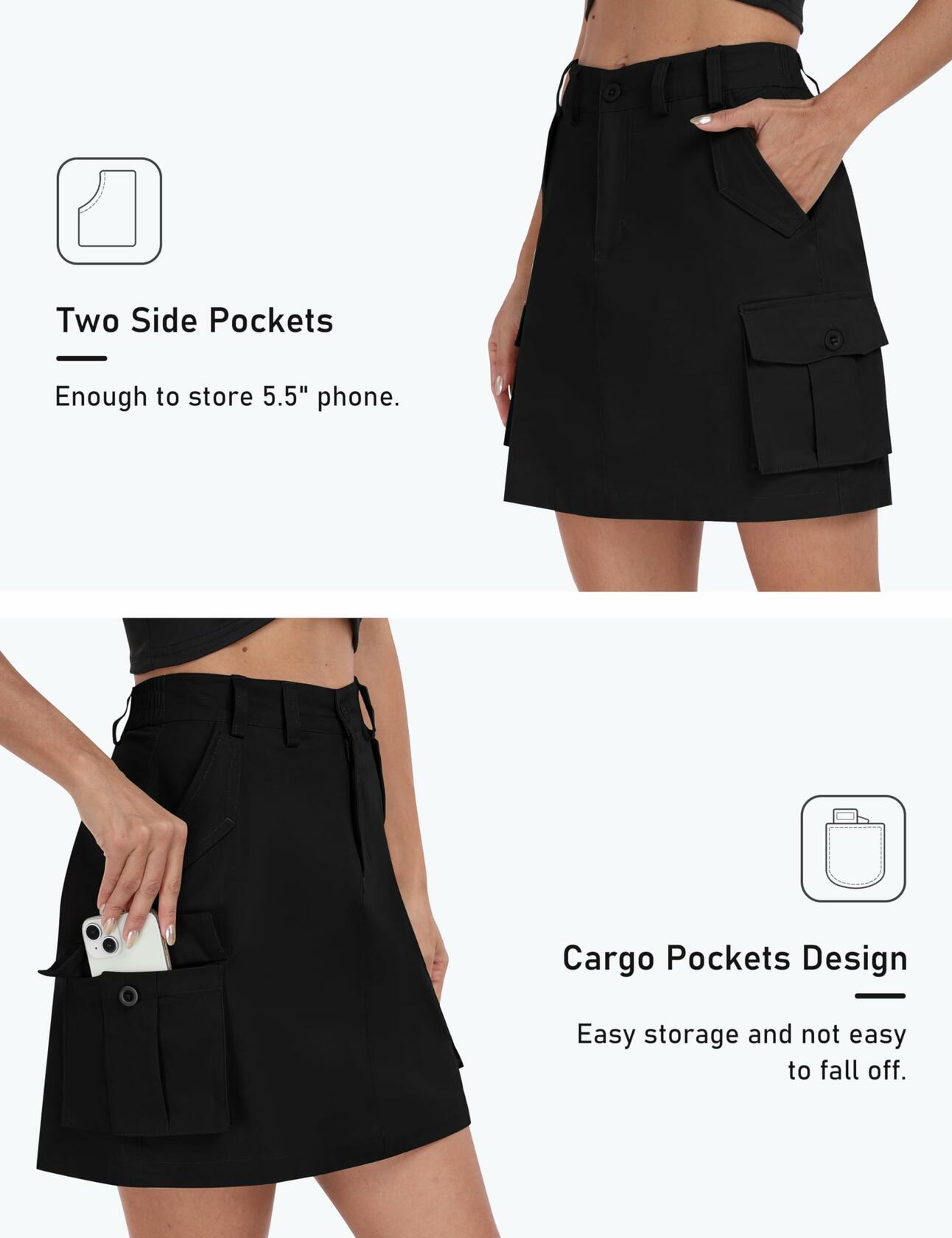 MoFiz Women's 18" Knee Length Golf Skirt Athletic Casual Cargo Black XS Size XS