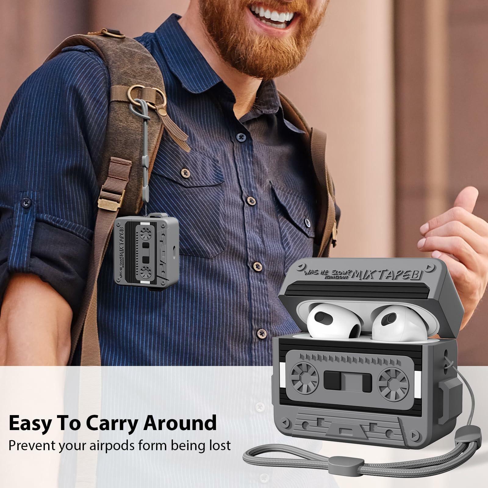 MOFREE AirPods 3 Case Cover Cassette Tape Design Soft Silicone Black