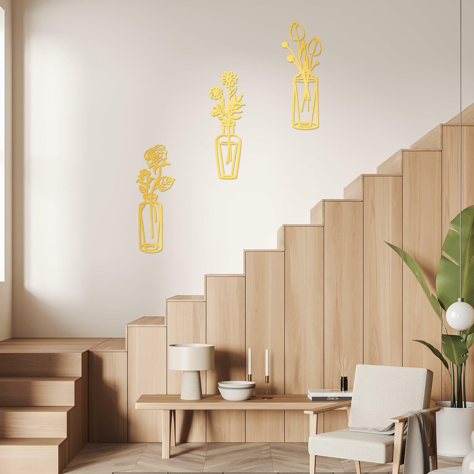 MorningRo 3 Pieces Metal Flowers Wall Decor Vase Rustic Farmhouse Gold