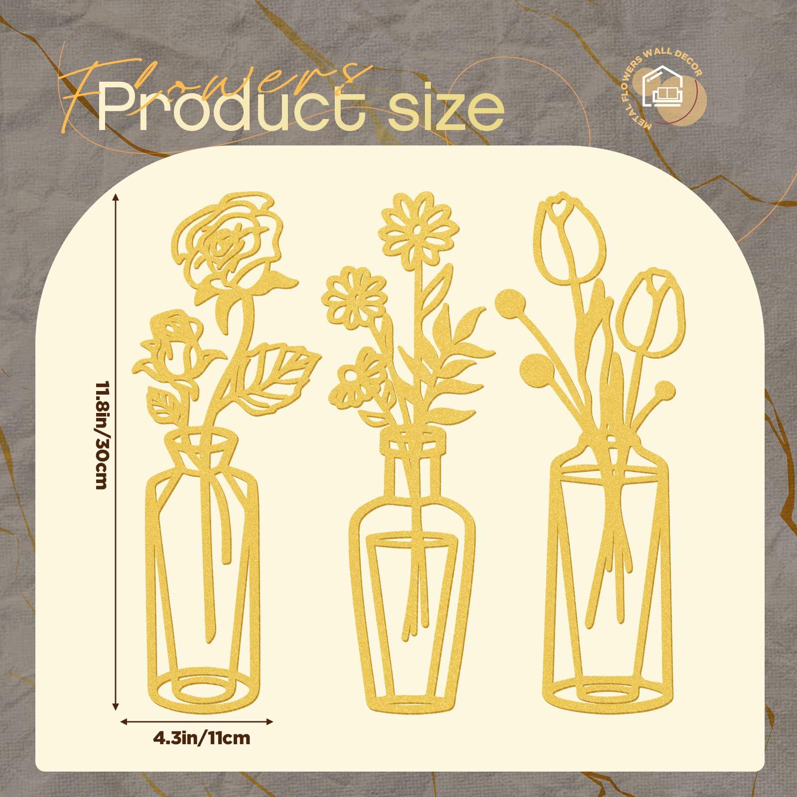 Features:Artistic Decoration:Metal flower wall decor incorporates a minimalist design style that combines metal wall decor and floral metal art. . Uplift the aesthetic appeal of your rustic bedroom wall decor with our artistic masterpiece.Thoughtful Gift Idea:Floral wall decor are suitable for decorating home walls, office, gardens, poaches, patios, living rooms, bedrooms, bars, weddings, birthdays, Thanksgiving and anniversaries. Extend this rustic charm to your friends, family, or colleagues and enjoy the joy of gifting.Specifications:Material: alloy ironColor: goldSize: tulips and roses11.8 x 4.3 inches, daisies 11.8 x 3.8 inchesPackage includes:3 x Metal wall artNotes:Manual measurement, please allow slight errors on size.The color may exist a slight difference due to different screen displays.