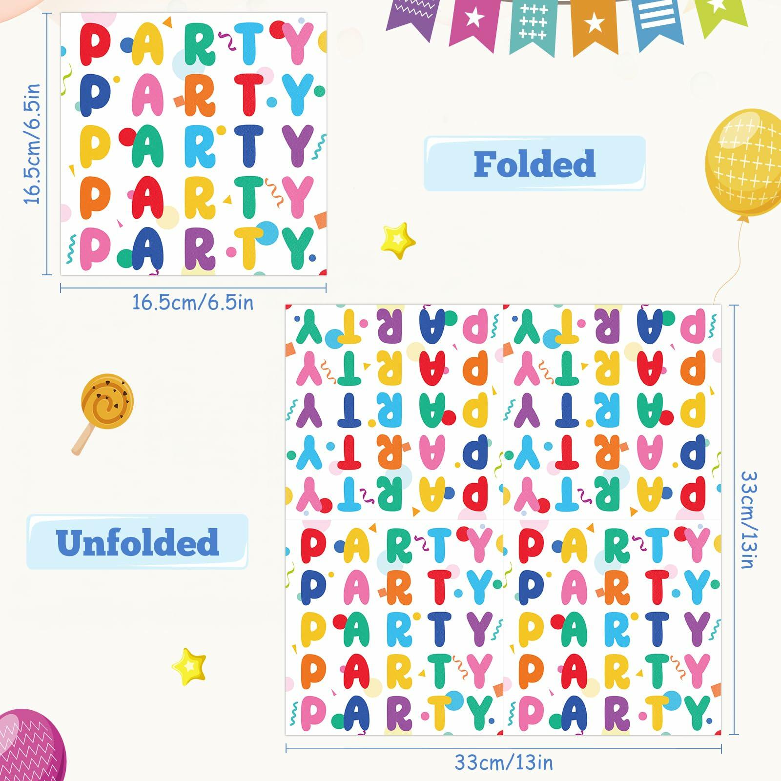 - Generous Quantity: elevate your party with a set of 100 disposable rainbow party paper napkins, ensuring you have more than enough for all your guests; These napkins are thoughtfully sized at 13 x 13 inches/33 x 33 cm when unfolded, and fold to a compact 6.5 x 6.5 inches/16.5 x 16.5 cm, making them easy to carry and store