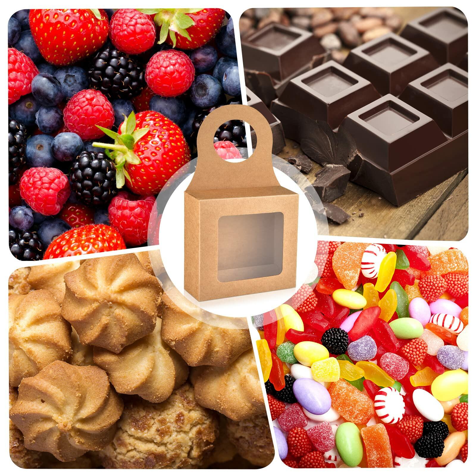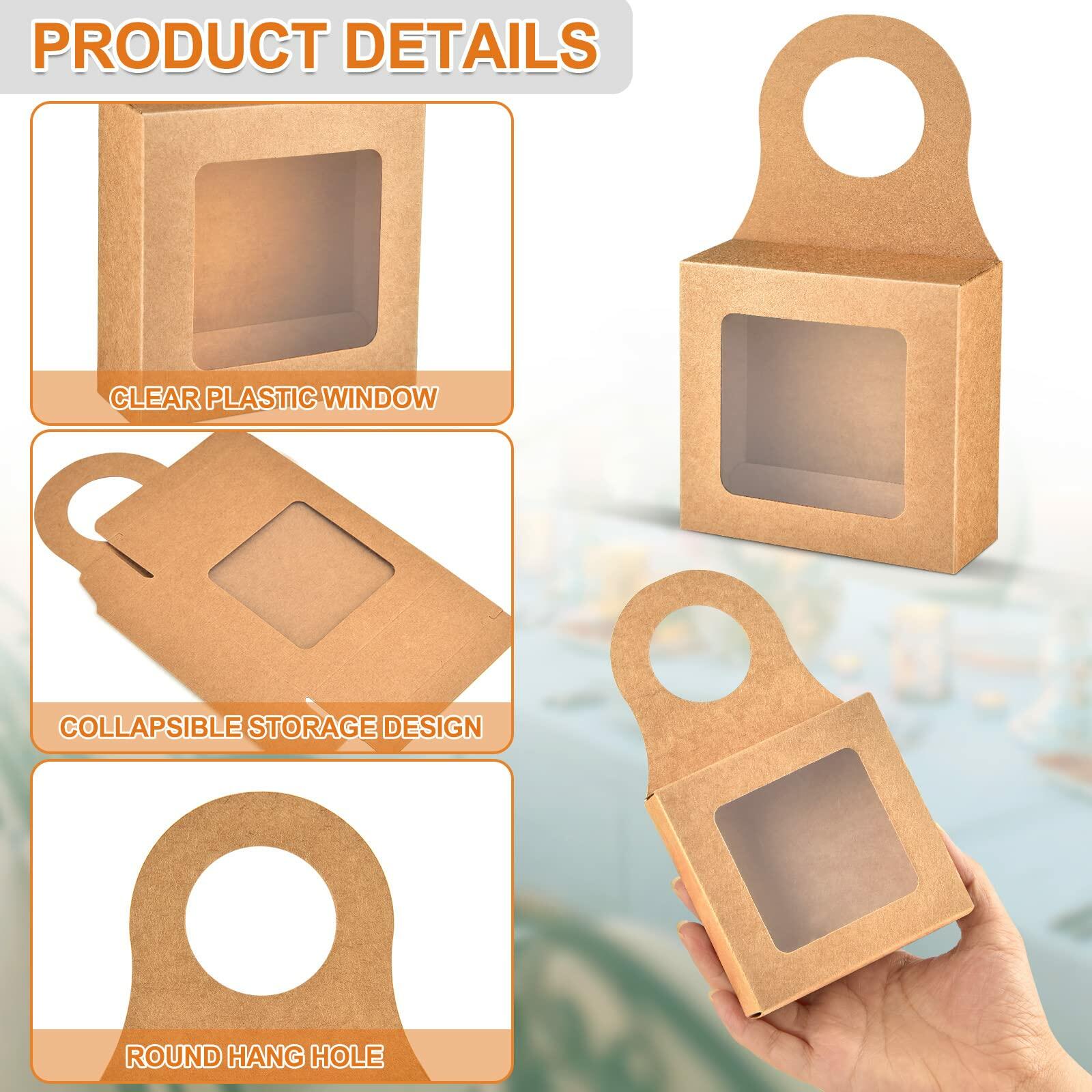 100 Pieces Kraft Paper Wine Bottle Box with Window Hanging Foldable Wine Boxes Gift Boxes Empty Wine Bottles for Decor Bottle Hanger Favor Box for holding Candy Truffles Chocolate Cookies, Kraft Color