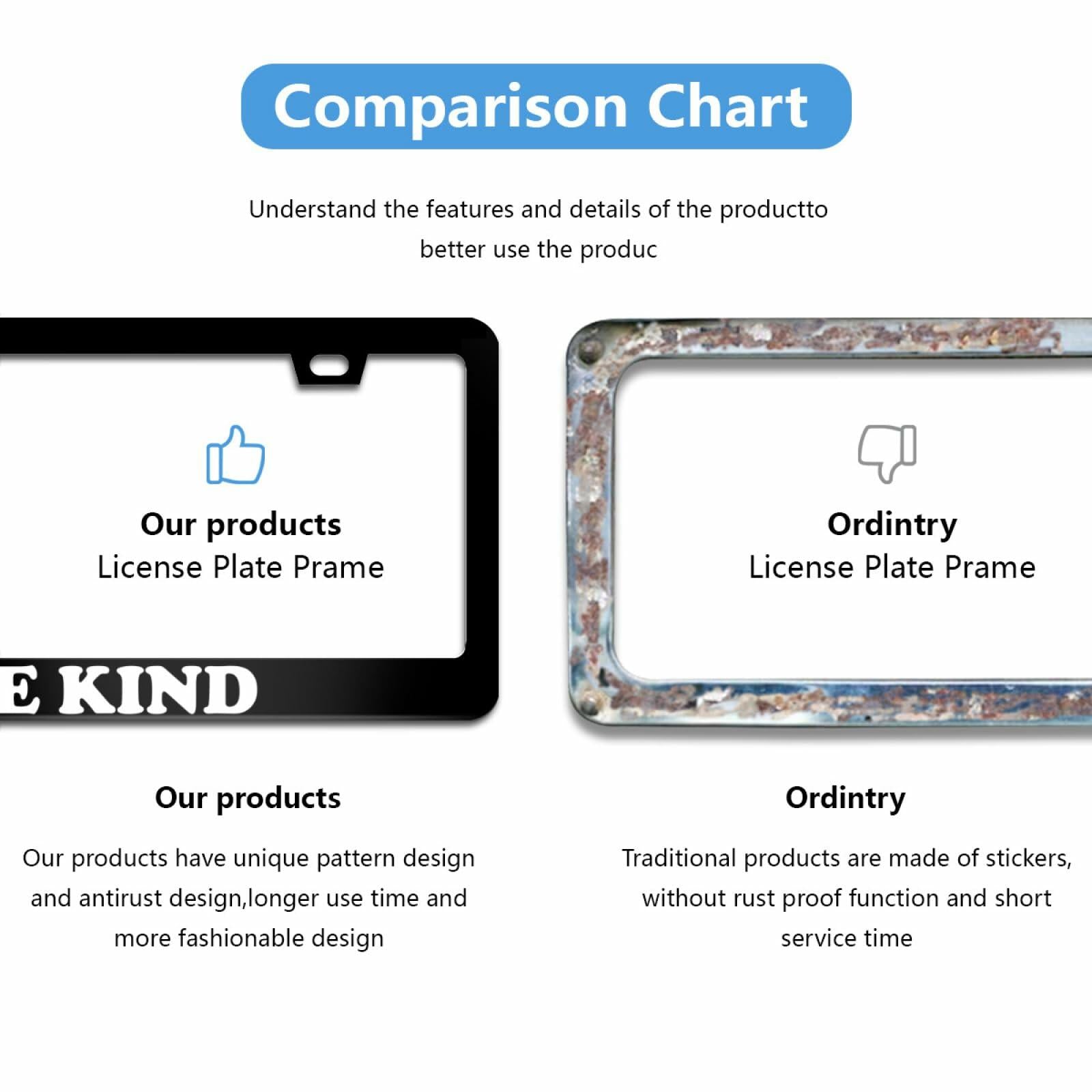 - Material: Made of high-quality aluminum alloy, which is long-lasting. The License Plate Frames are protected against Weather Changes and will stand Car Washes and Rain.