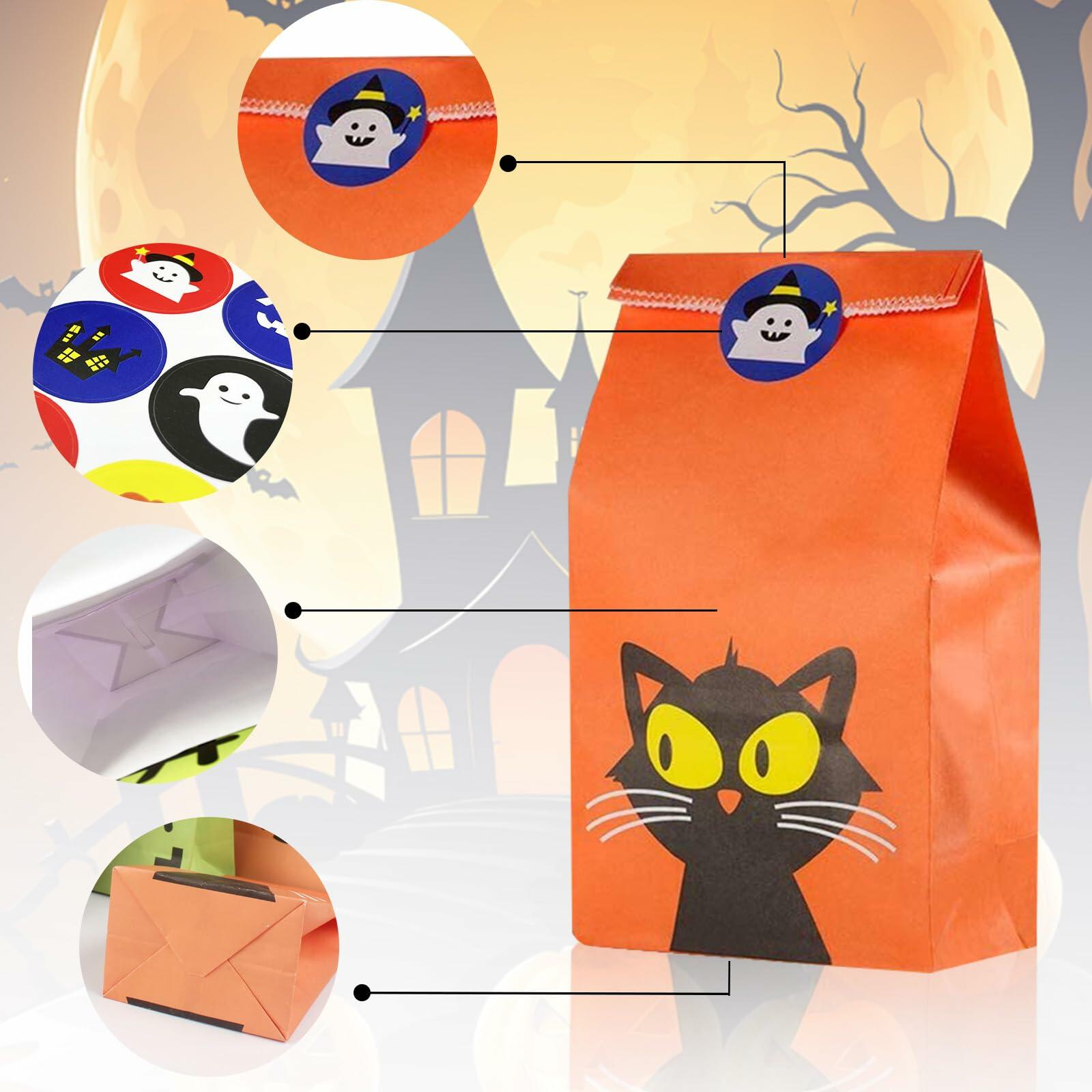 - Convenient and Easy to Use: The Halloween presents bags come with matching stickers, making paper bags easy to seal the bags and keep the treats secure. The stickers add a fun element and allow for quick and effortless packaging, saving you time and effort.