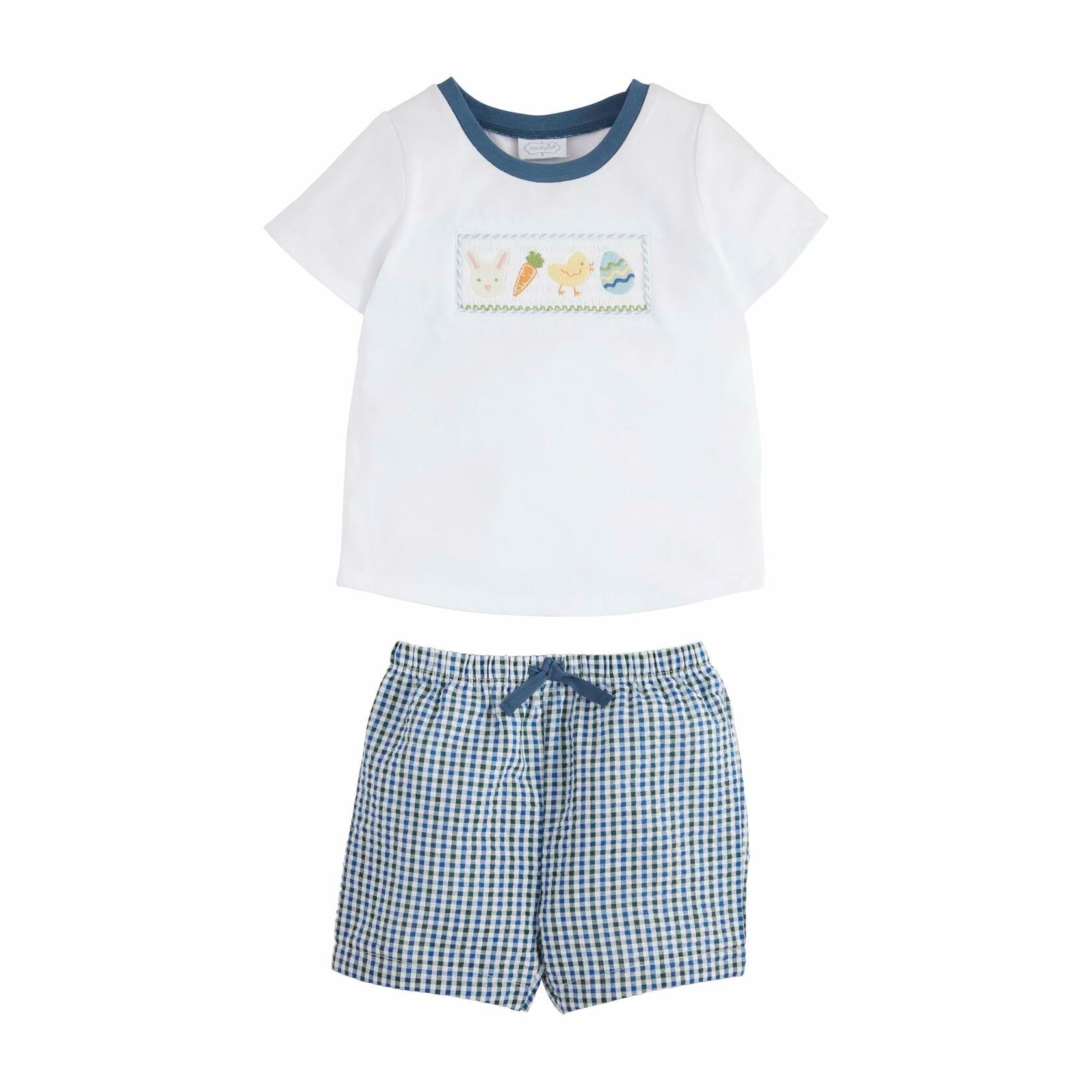 Mud Pie Easter Smocked Short Set Blue Gingham Size 4T-5T
