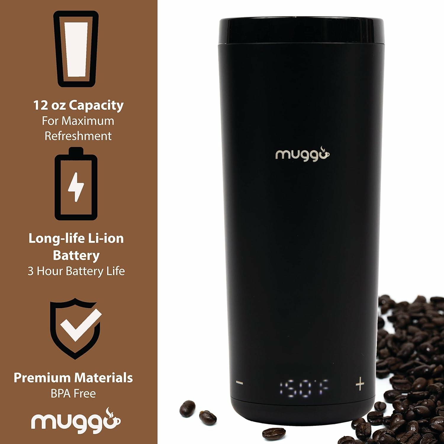 Muggo 12oz Self-Heating Coffee Mug Black Battery Powered Travel Warmer